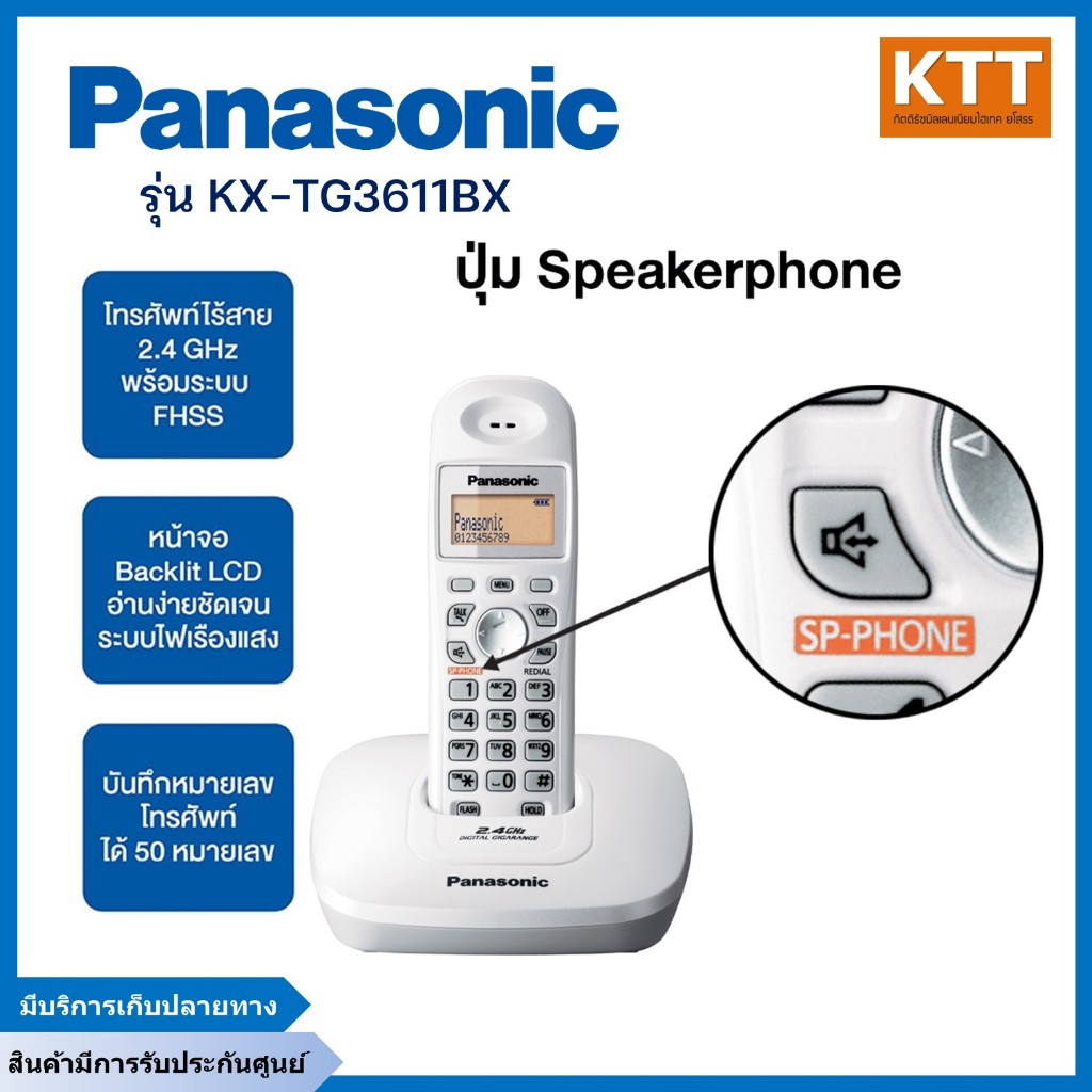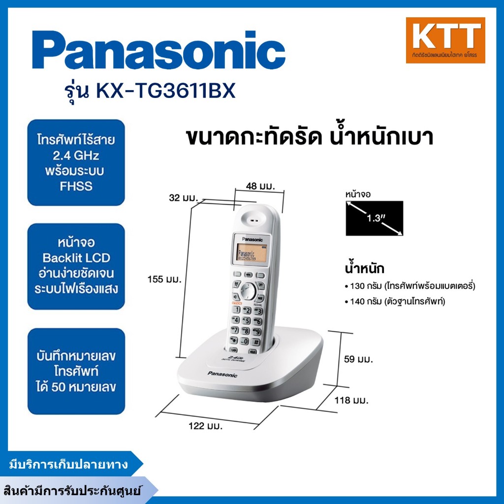 Panasonic Cordless Phone โทรศัพท์ไร้สายพานาโซนิค รุ่น KX-TG3611BX มีจอ สีขาว โทรศัพท์ สำนักงาน บ้าน