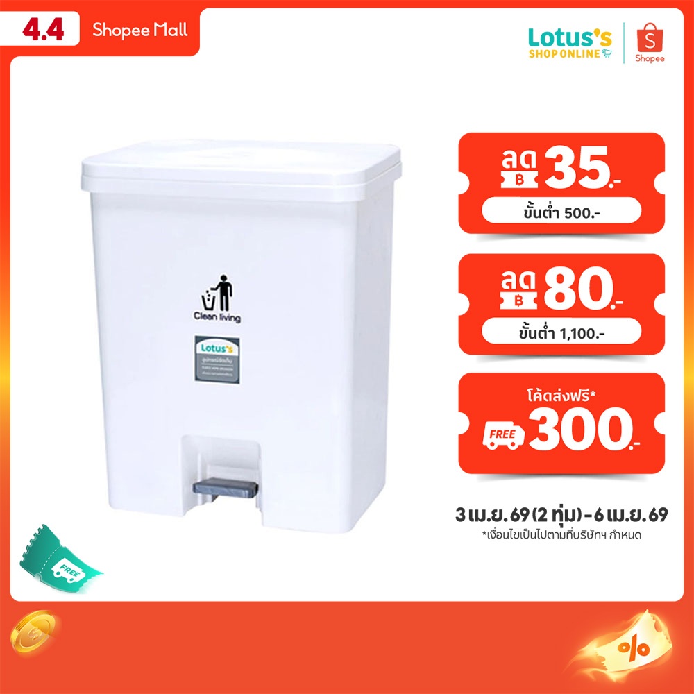 โลตัส ถังขยะเหยียบ ขนาด 30 ลิตร รุ่น 915 LOTUSS PEDAL DUST BIN 30 LT#915