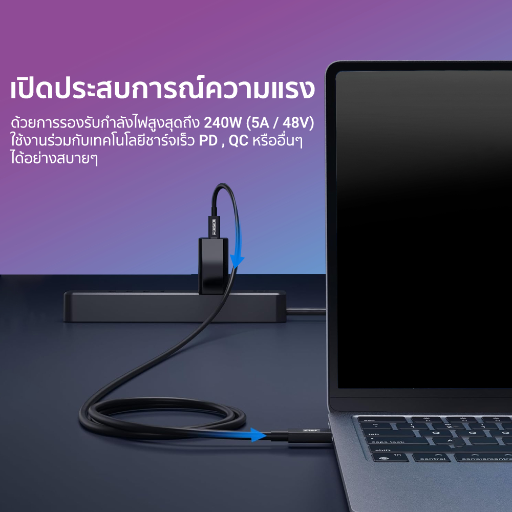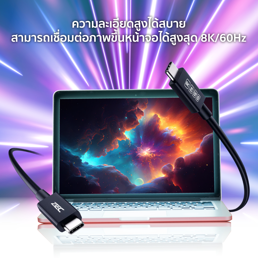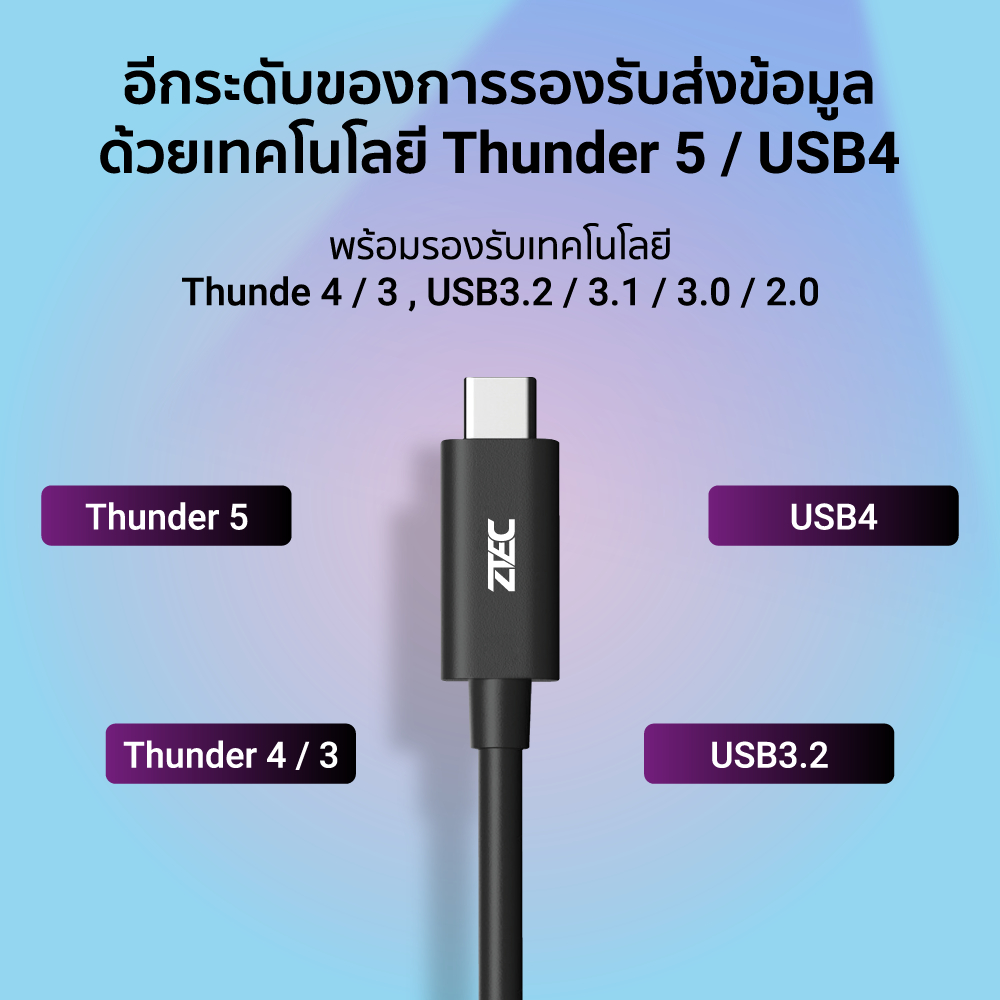 [ลดเหลือ 599] ZTEC Thunder 5 Cable ZC651 สายชาร์จ ส่งข้อมูล 80Gbps USB4 240W 8K/60Hz ยาว 1.5 m -2Y