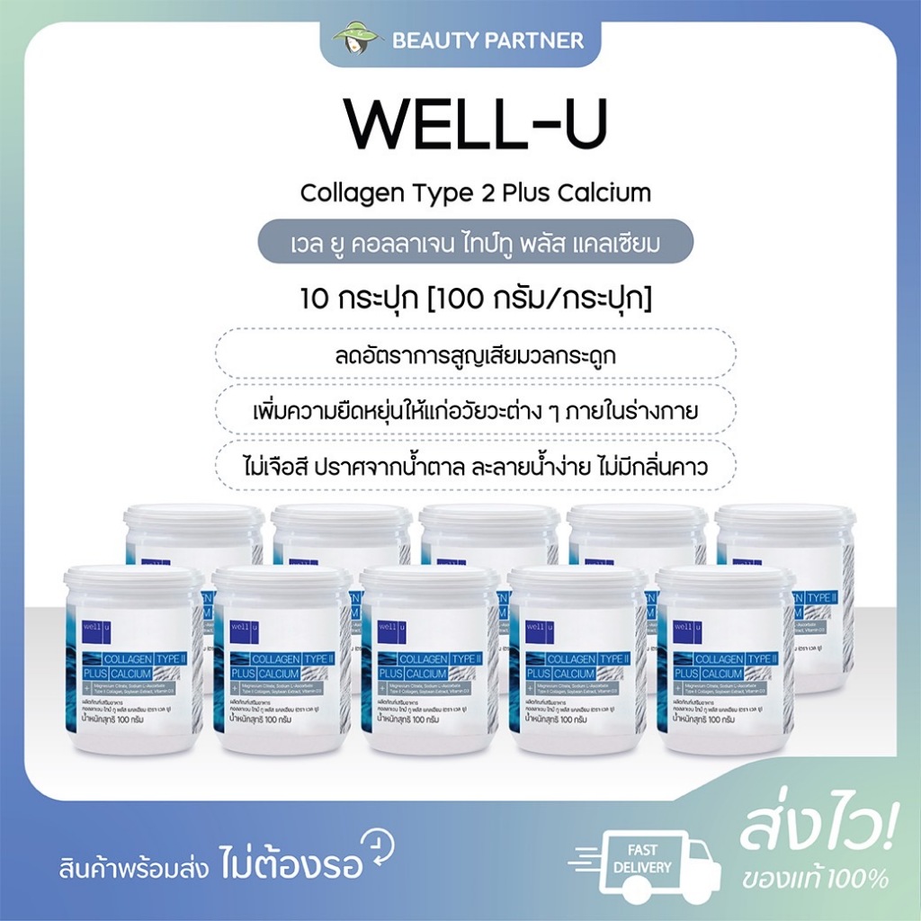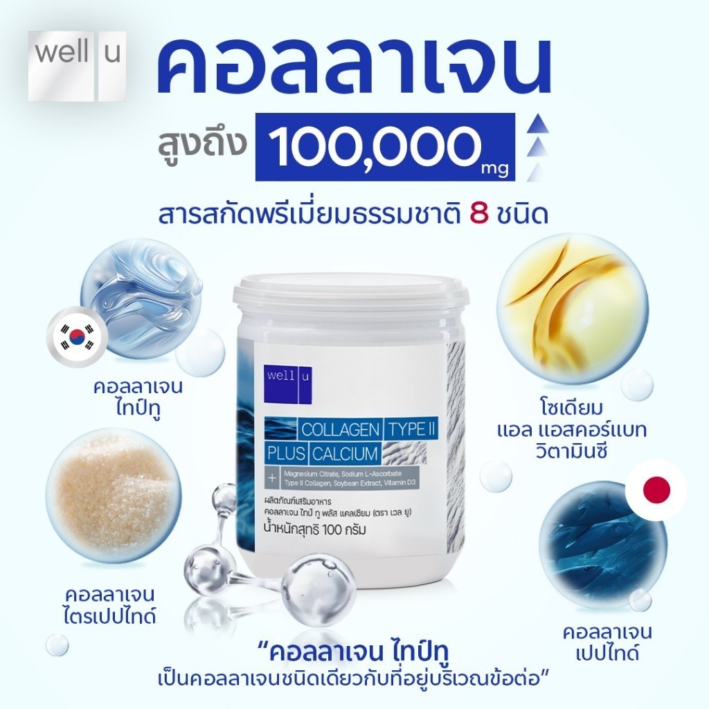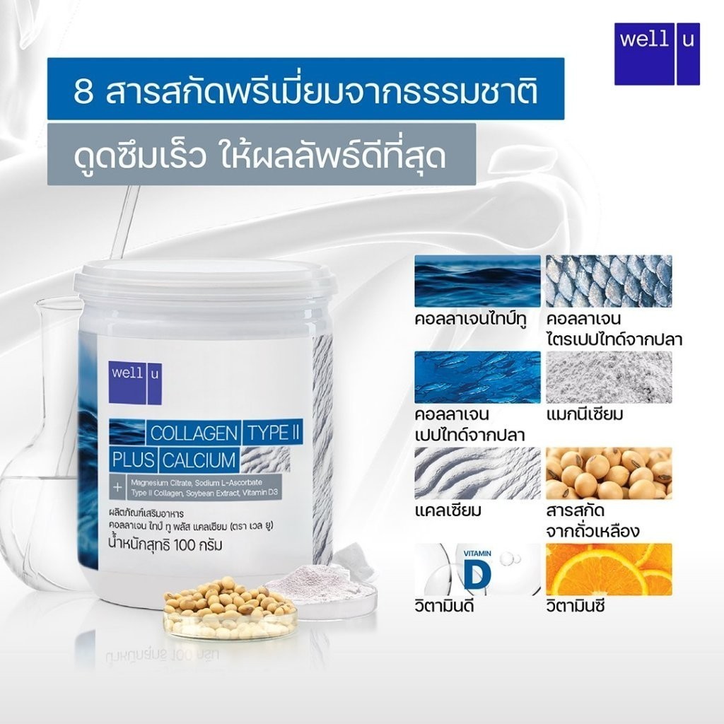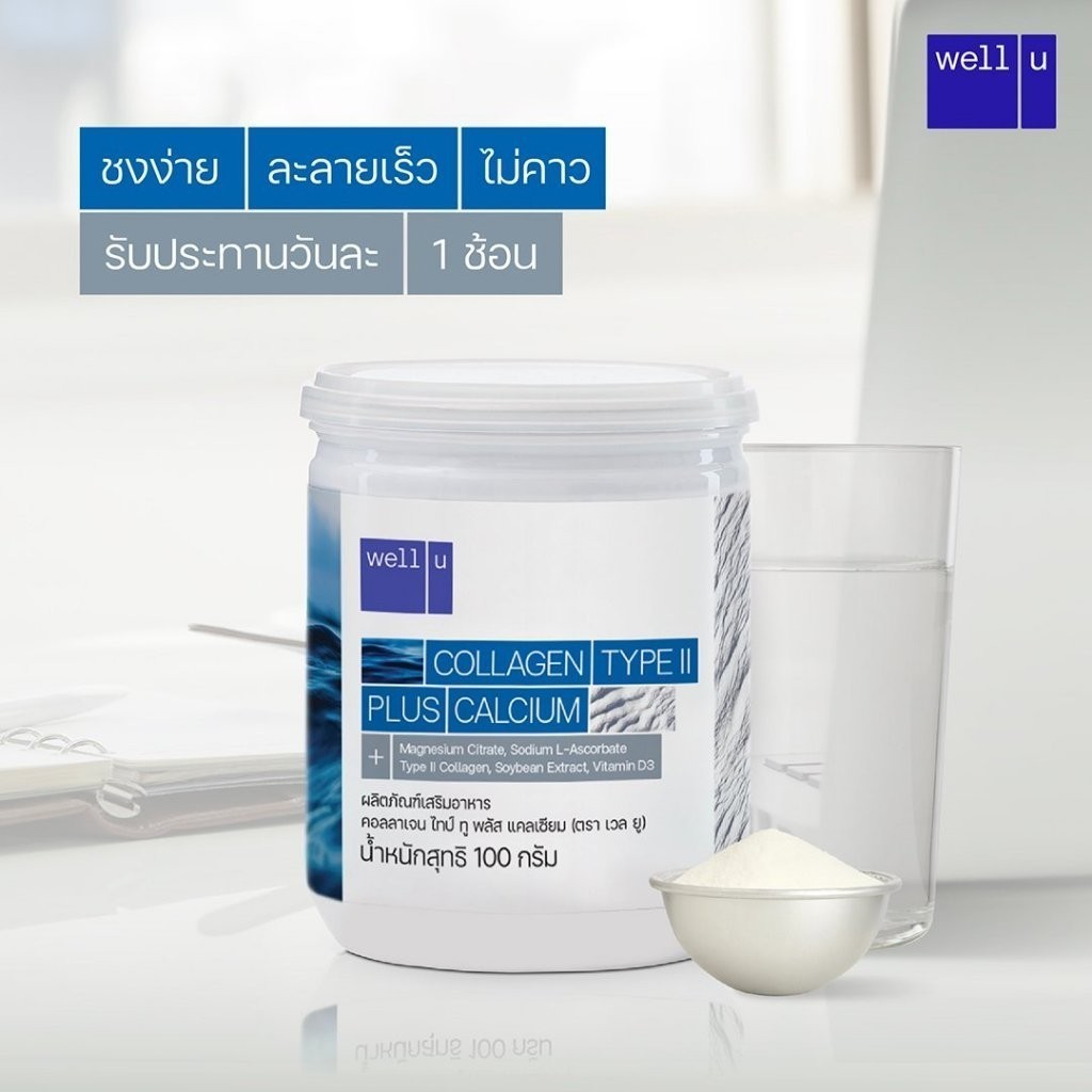 WELL-U Collagen Type 2 Plus Calcium เวล ยู คอลลาเจน ไทป์ทู พลัส แคลเซียม [100 กรัม] [10 กระปุก] คอลลาเจน ดูแลกระดูก