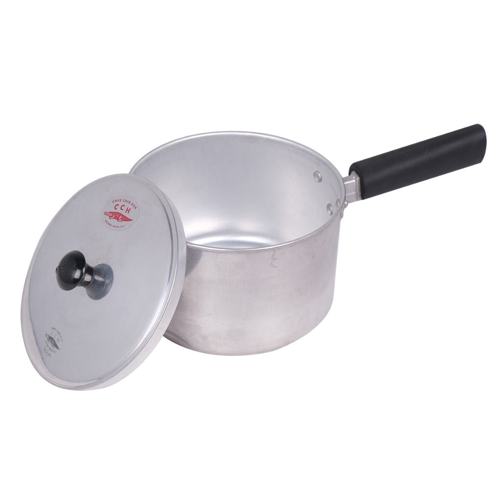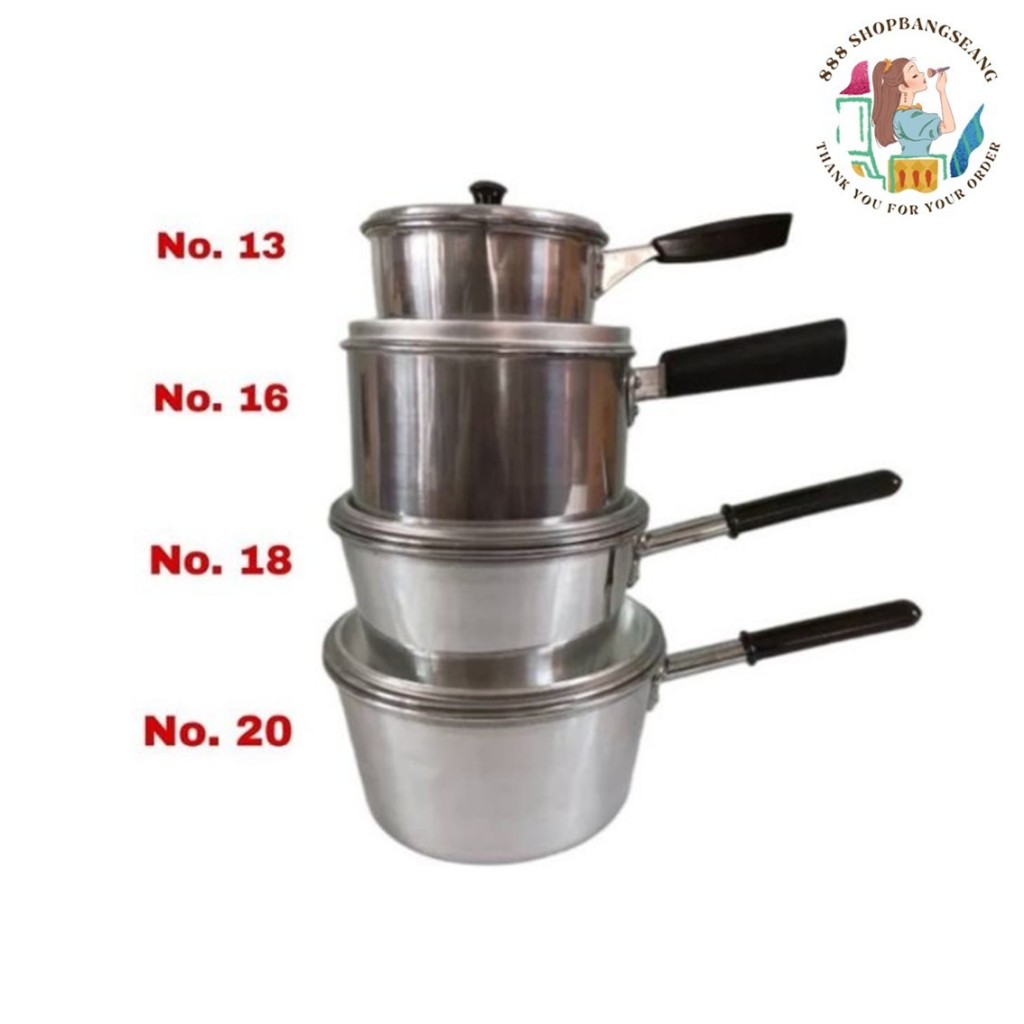 (1ใบ)หม้อด้าม หม้อต้ม อลูมิเนียม มีด้ามจับ ตราจระเข้ เบอร์ 16ซม.,18ซม.,20 ซม.