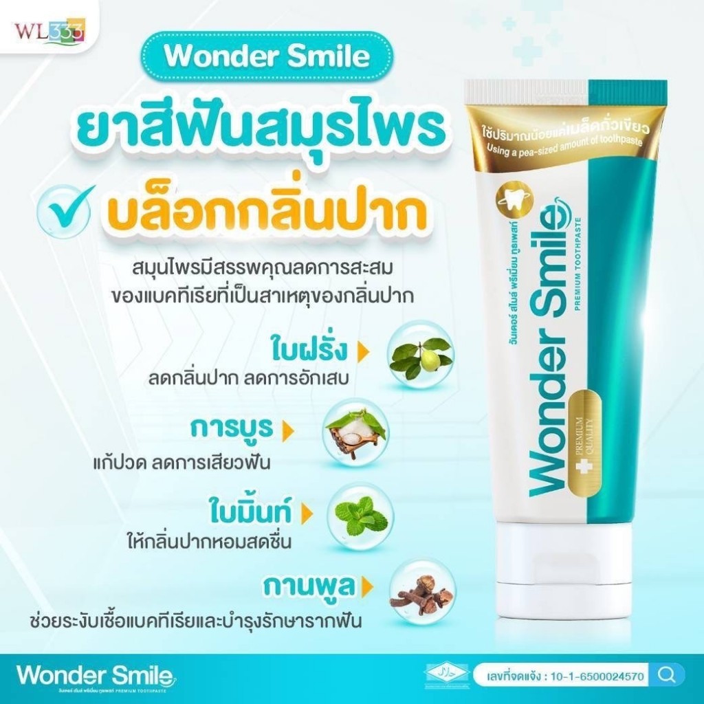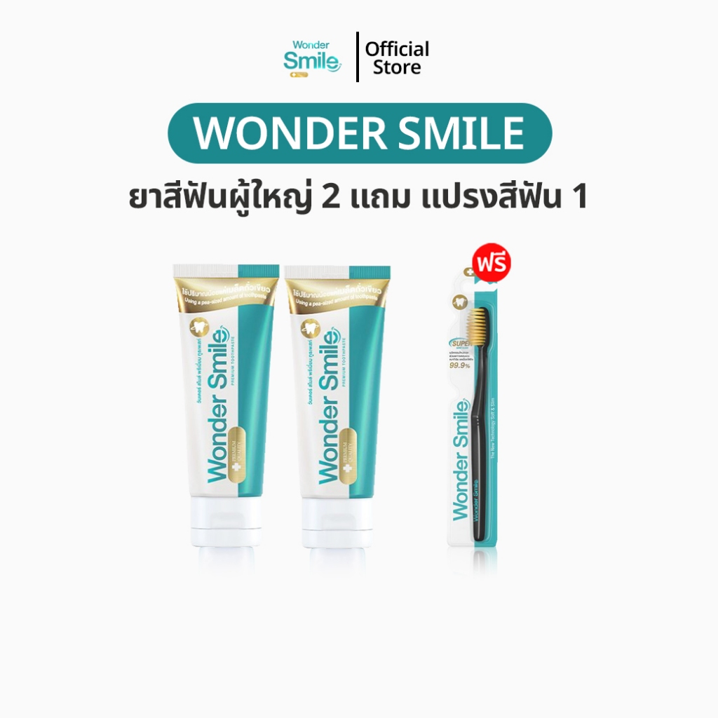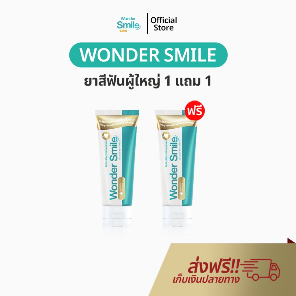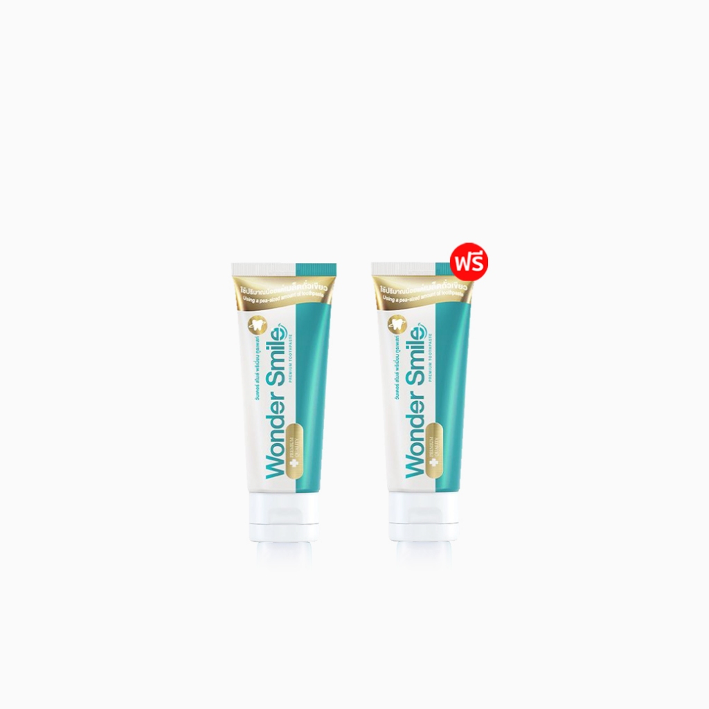 Wonder Smile 1 แถม 1 ยาสีฟัน วันเดอร์สไมล์ ยาสีฟันสมุนไพร ลดกลิ่นปาก น้ำลายบูด ลดคราบเหลือง ของแท้