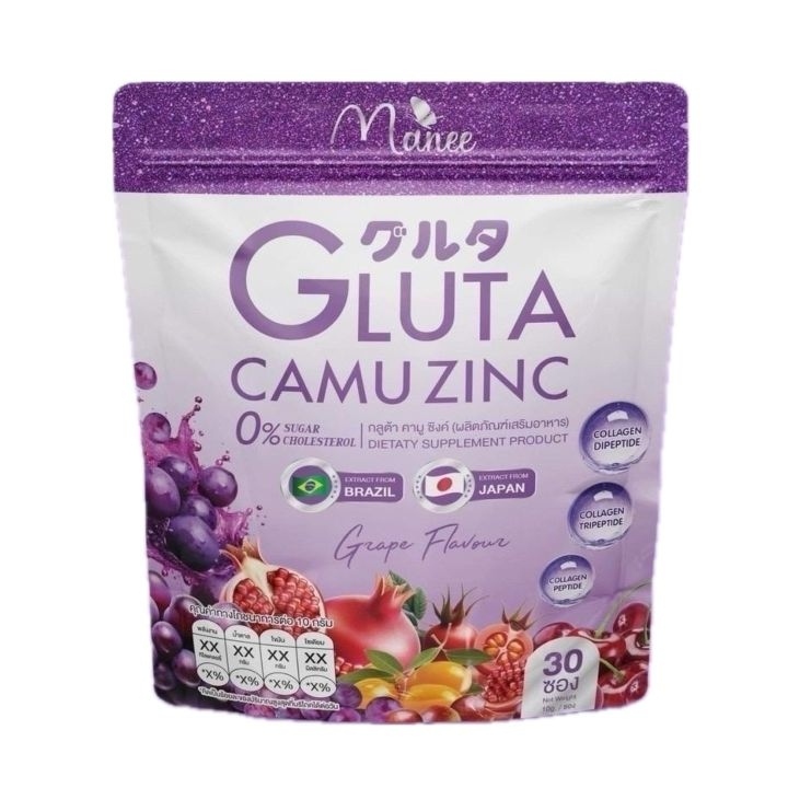(1 ห่อ) MANEE GLUTA COLLAGEN ผงชงกลูต้า คามู ซิงค์ ห่อม่วง (ปริมาณ 30 ซอง)