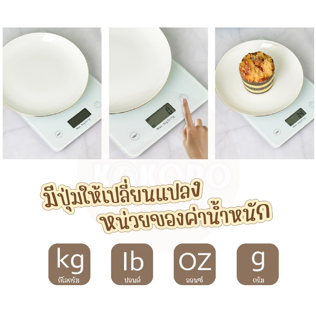 [ส่งด่วน 2 ชม.] Kokoro Home ตาชั่งอาหาร 5kg จอLCD แบบกระจก MB136 เครื่องชั่ง กิโลดิจิตอล เครื่องชั่งอาหาร ตาชั่ง1กิโล