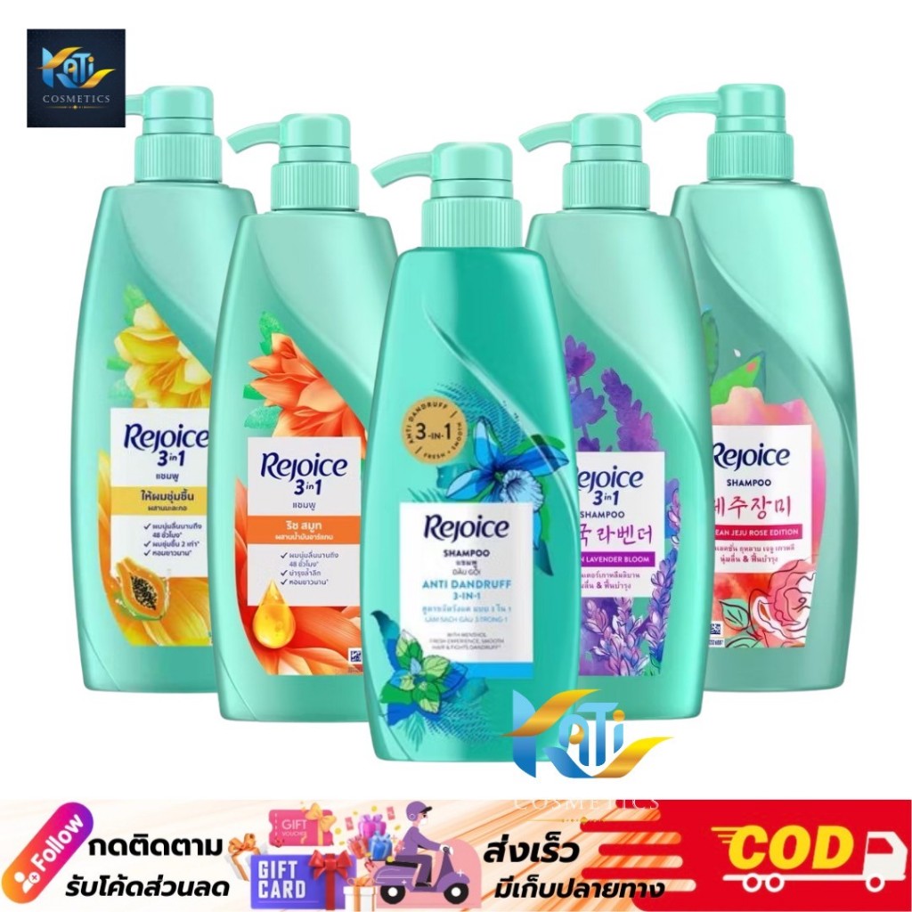 Rejoice Shampoo รีจอยส์ แชมพูสระผม 3in1 ขจัดรังแค ผมมัน ลดผมร่วง ปริมาณ 370 - 525 มิลลิลิตร.