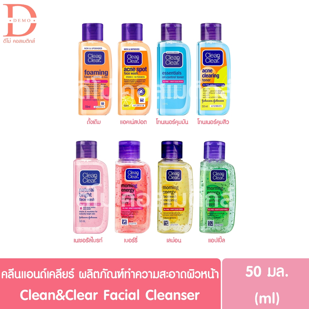 คลีน แอนด์ เคลียร์ เฟซ วอช/คลีนเซอร์/เจลล้างหน้า/คลีนซิ่ง/โทนเนอร์ 50มล. Clean&Clear Face Wash/Cleanser/Cleansing/Toner