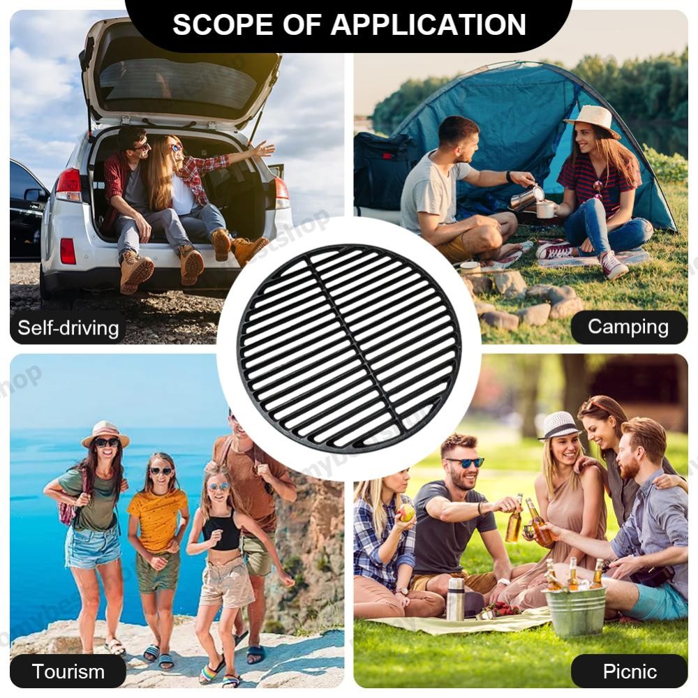 🚚 14.6 นิ้วเหล็กหล่อย่างบาร์บีคิวตะแกรงรอบทําอาหารตารางบาร์บีคิวสุทธิถ่านเจาะไฟสําหรับ Cmping Travel [Domybestshop.th]