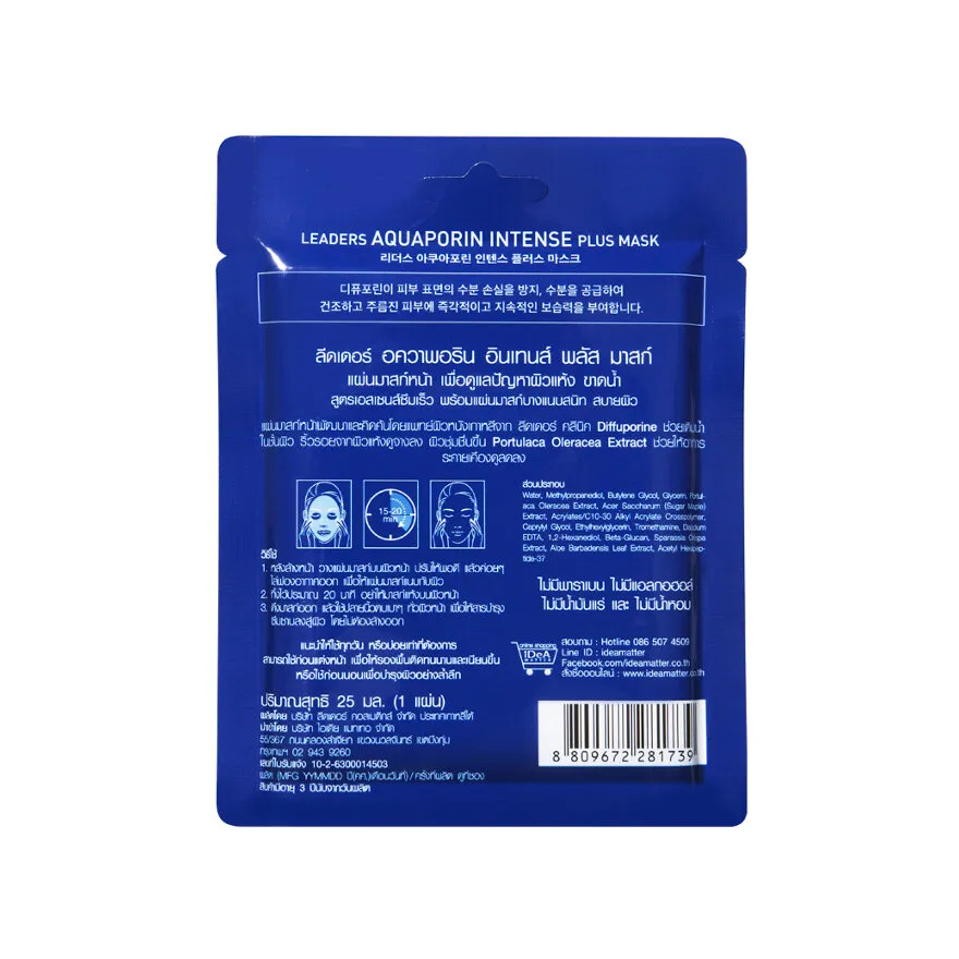 ลีดเดอร์ แผ่นมาสก์หน้า อควาพอริน อินเทนส์ พลัส 25มล./ Leaders Aquaporin Intense Plus Facial Mask 25ml