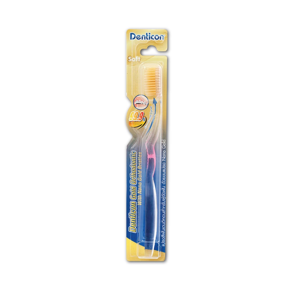 Denticon Nano Gold Orthodontic Toothbrush 1pcs. เดนติคอนแปรงสีฟันนาโนโกลด์ออโทจัดฟัน 1ด้าม