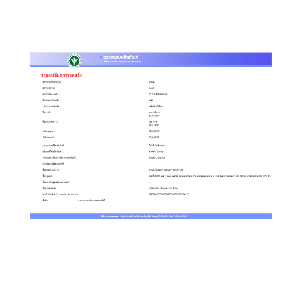 Burnova Gel Plus เบอร์นโนว่า เจล พลัส เจลบำรุงผิวหน้า สำหรับผิวแพ้ง่าย สูตรดั้งเดิม / สาหร่ายหิมะสีแดง [PC]
