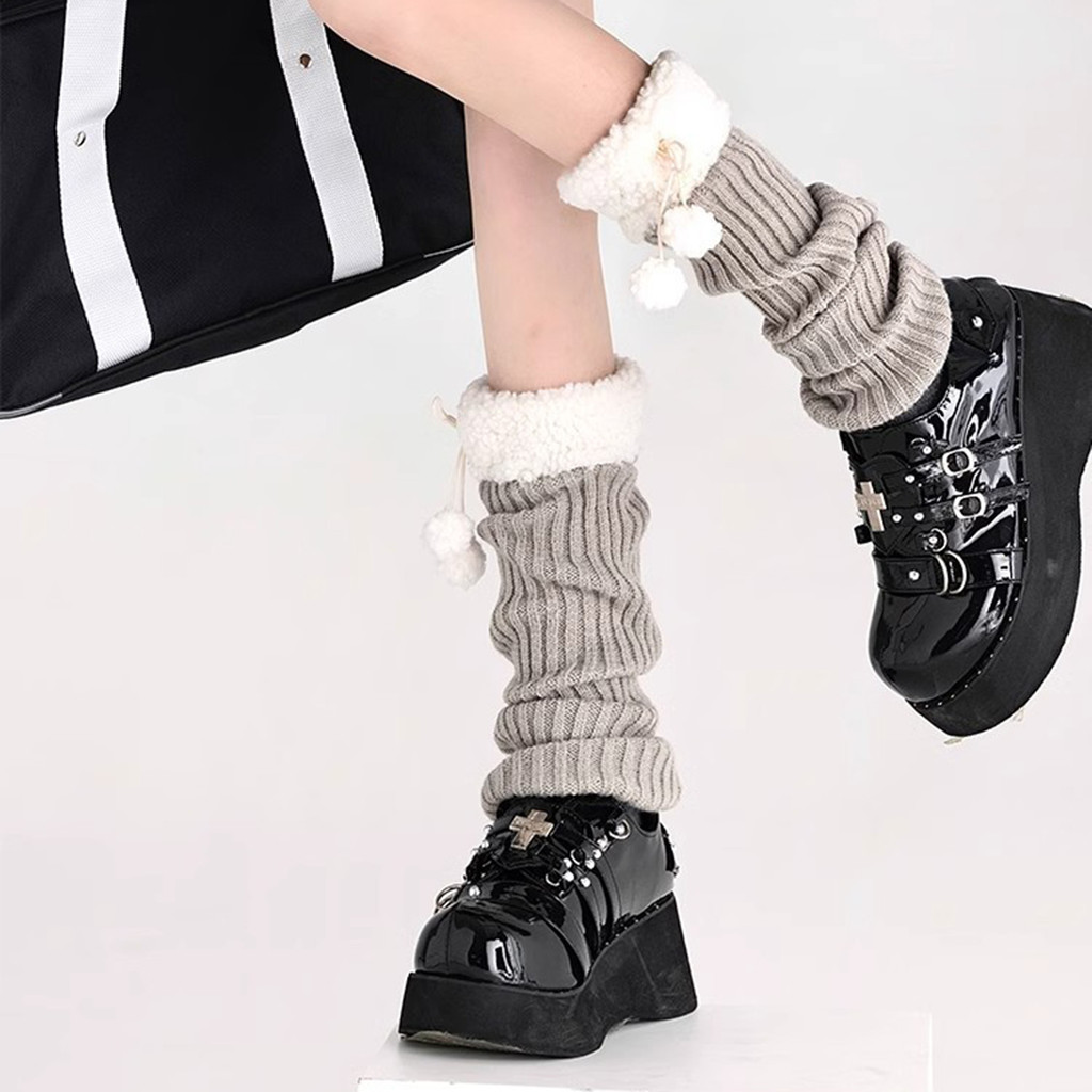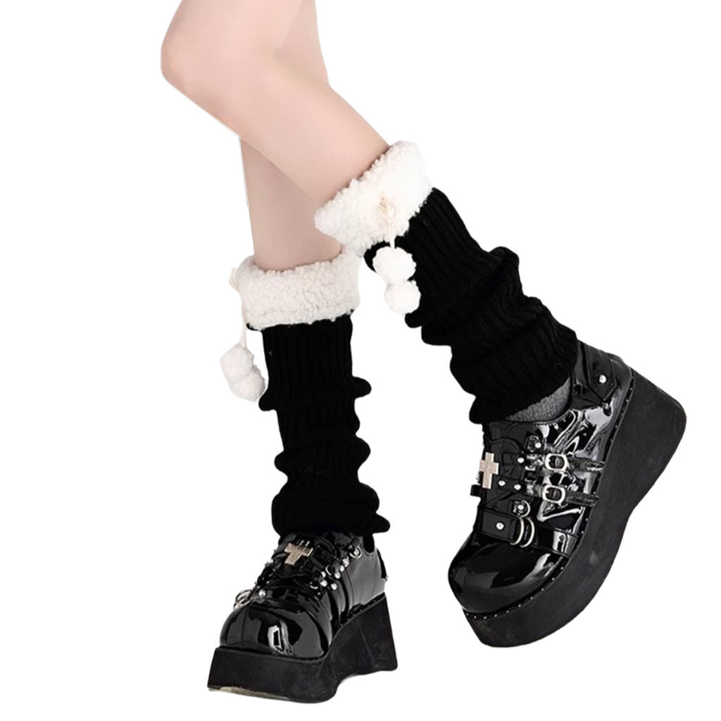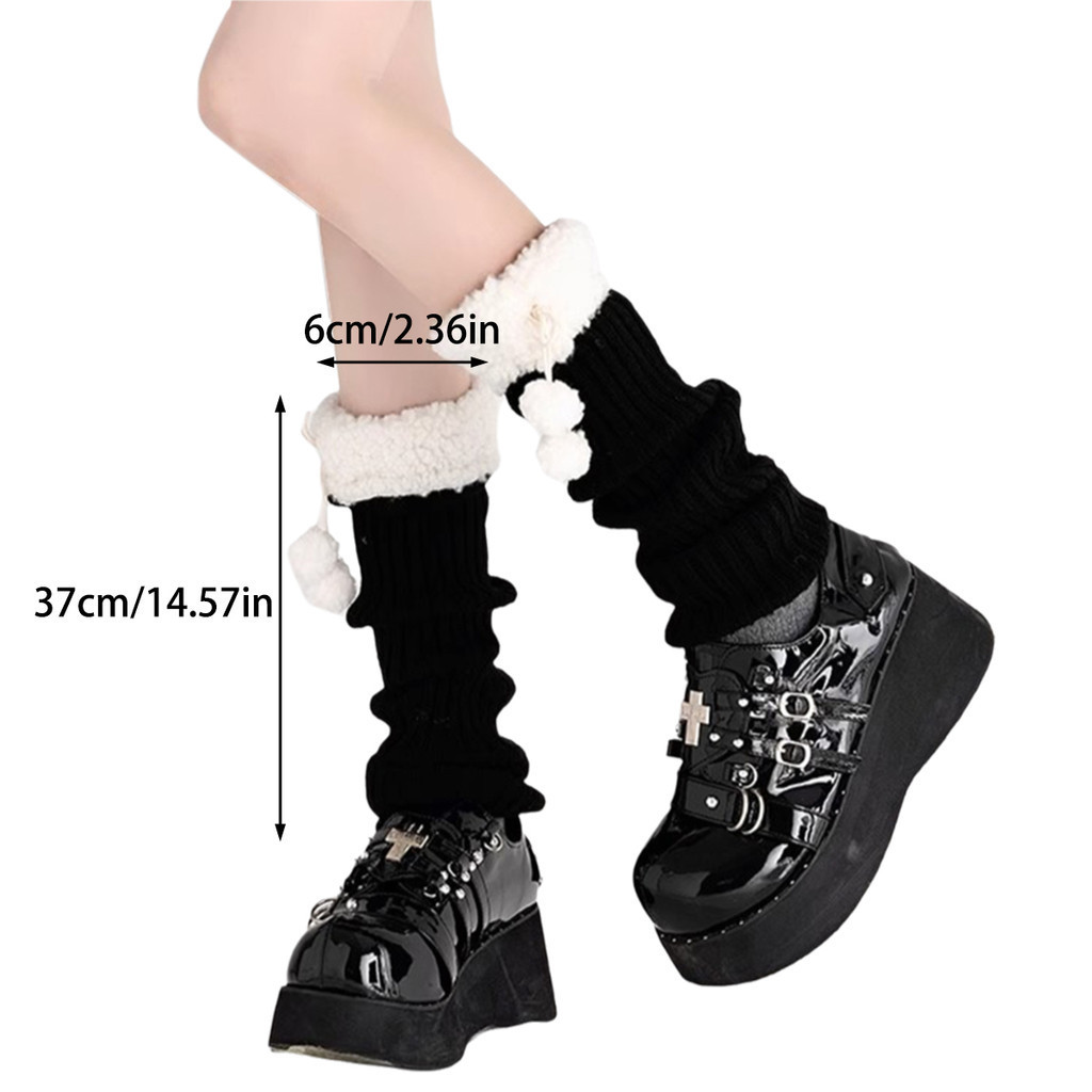 ฤดูหนาว Warm ถักขาอุ่นสําหรับสาว Lolita Fuzzy Ball เข่าถุงเท้าสําหรับฤดูหนาวเท้า Heap ถุงเท้า Boot Cuffs