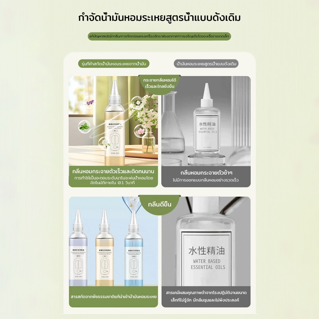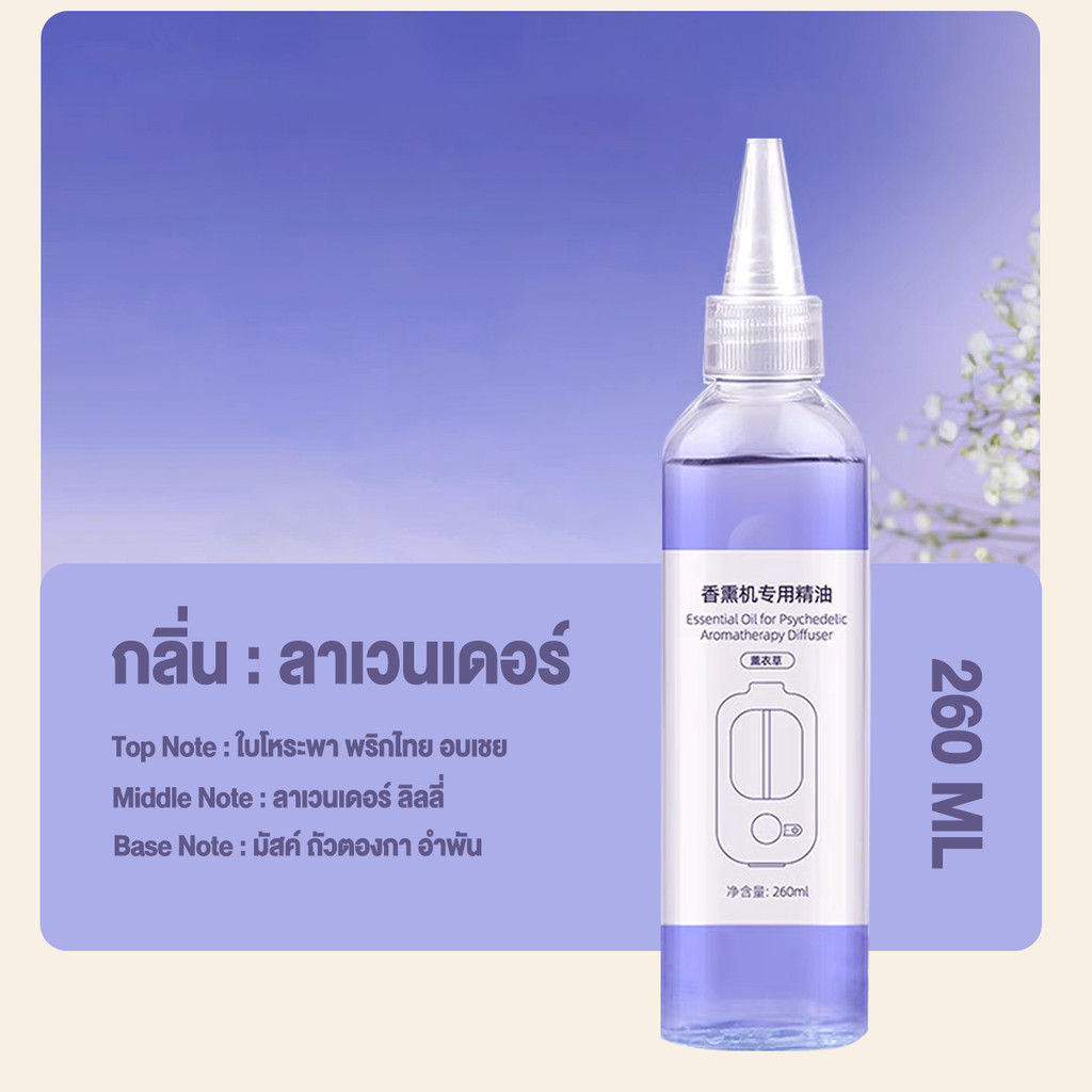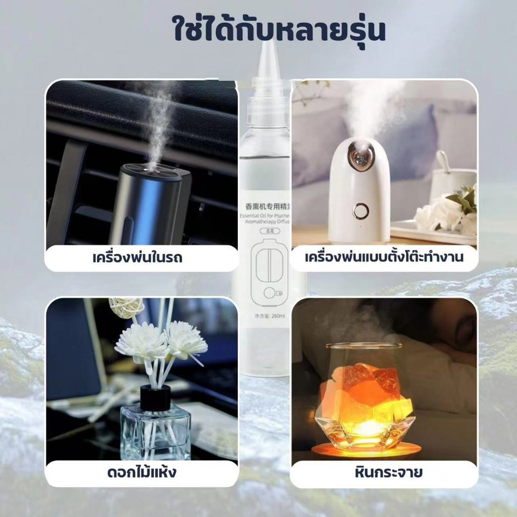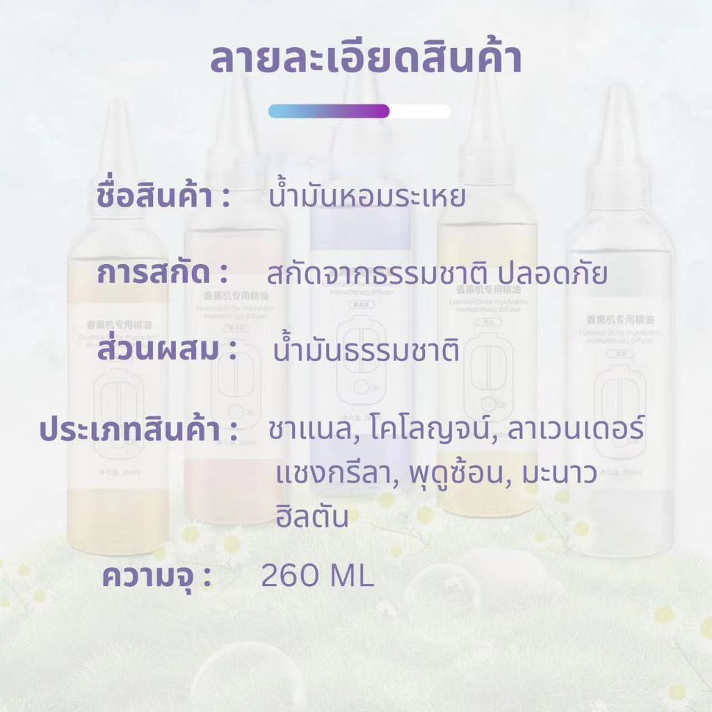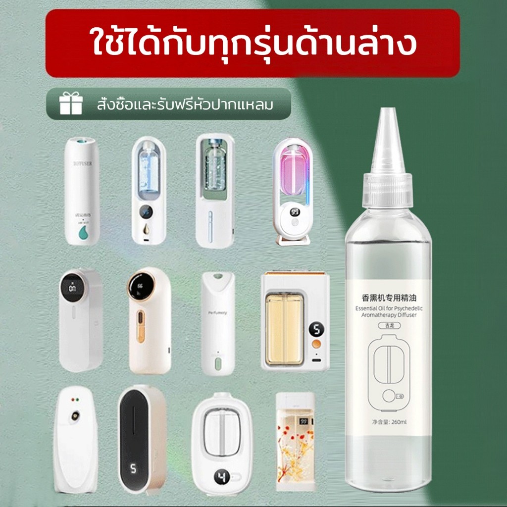 เครื่องอโรมาสากลเติมน้ำหอมอัตโนมัติของเหลวขวดขนาดใหญ่ 260 มล. น้ำมันหอมระเหยอโรมาเธอราพีผิวมันพร้อมน้ำหอมจำนวนหนึ่ง