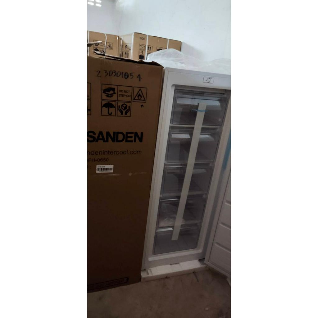 New!! ตู้แช่แข็งฝาทึบ แบบยืน 1 ประตู Sanden รุ่น SFH-0650 ขนาด 6.5Q ( รับประกันนาน 5 ปี )