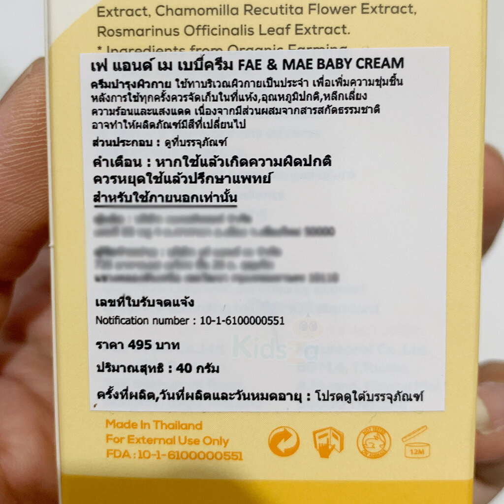 Fae and Mae ของแท้!! เฟแอนด์เม เบบี้ครีม ครีมทาผิวเด็ก ผดผื่น ผื่นผ้าอ้อม Certified Organic Baby Cream Sooting & Mois...