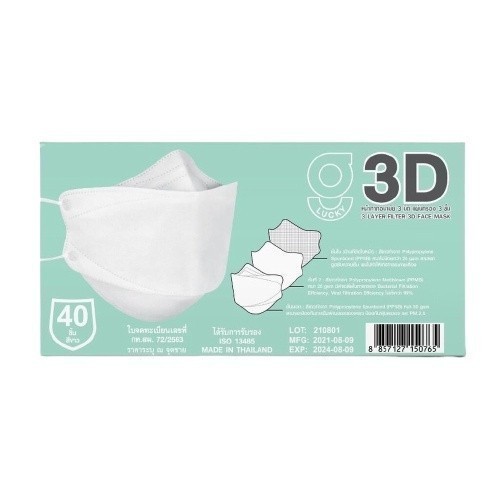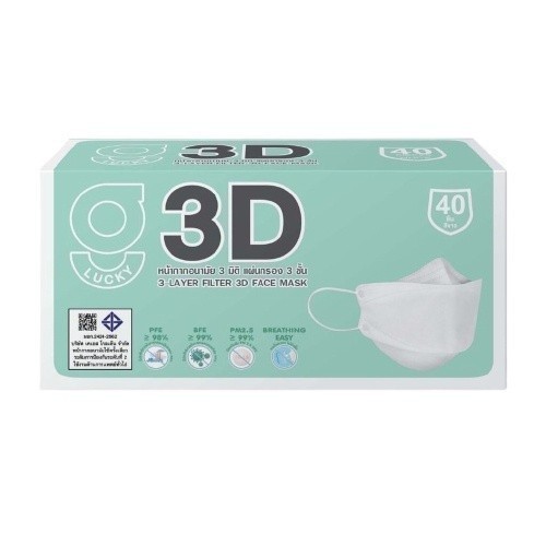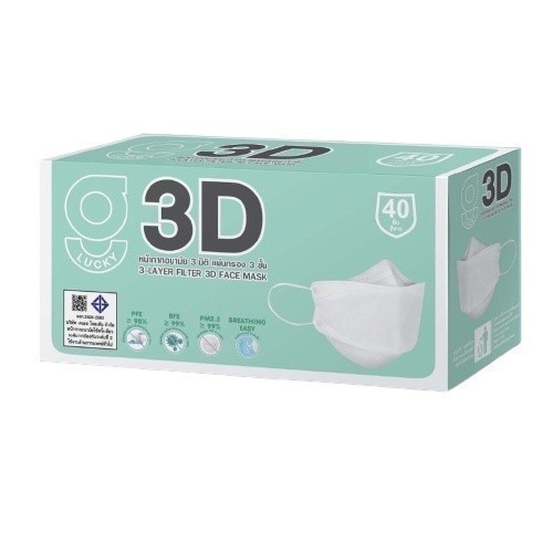 G Lucky 3D จี ลัคกี้ หน้ากากอนามัย 3มิติ สีขาว 40 ชิ้น/กล่อง