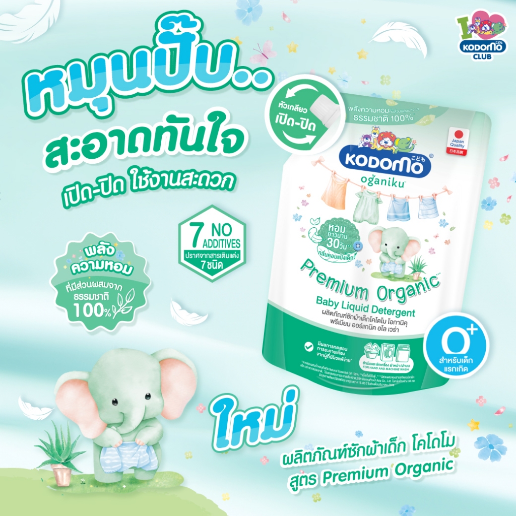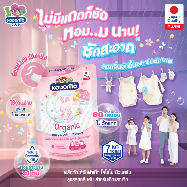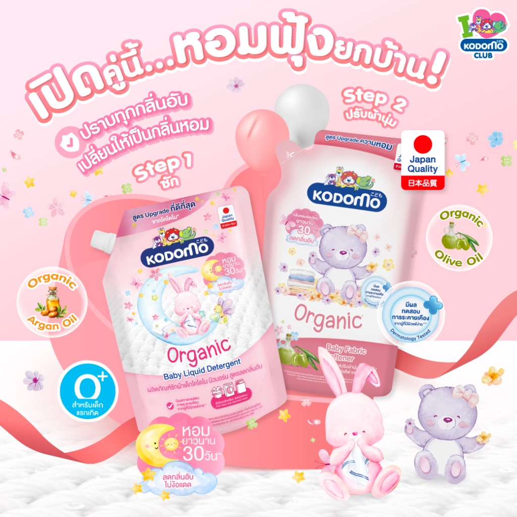 Kodomo โคโดโม นิวบอร์น ออร์แกนิค น้ำยาซักผ้าเด็ก ขนาด 450 มล./ 580 มล. สำหรับเด็กแรกเกิด กลิ่นหอม อ่อนโยน