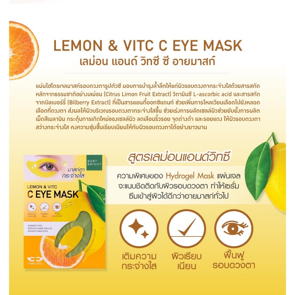 Baby Bright Eye Mask #มาสก์ตาตัวซี แผ่นเจลมาสก์รอบดวงตา【ซอง/คู่】Avocado / Lemon