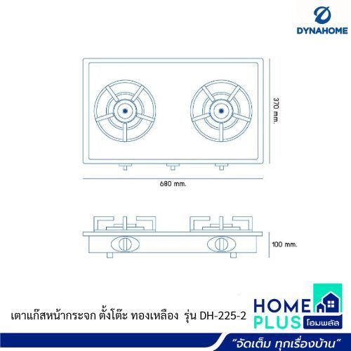 Dyna Home เตาแก๊สหน้ากระจก ตั้งโต๊ะ ทองเหลือง ระบบจุดไฟฟ้าอัตโนมัติ DH-225-2