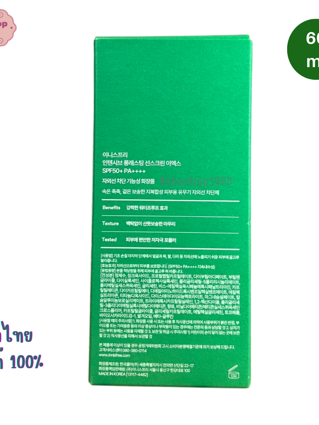 Innisfree Intensive Long Lasting Sunscreen SPF50+ PA++++ 60ml ครีมกันแดดกันน้ำ สำหรับผิวหน้า+ผิวกาย