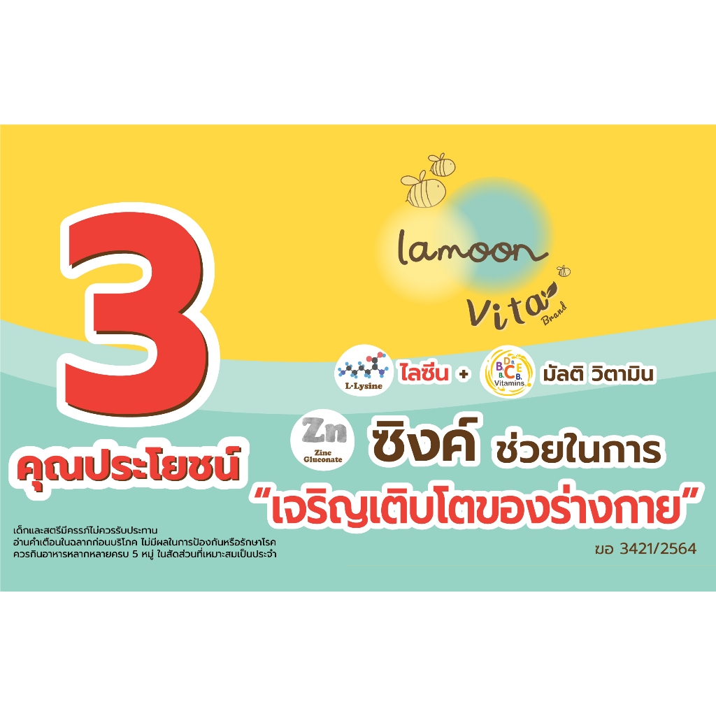 Lamoon Vita Yummi-O Multi-Vitamin Kids L-Lysine Plus Amino Complex 120 ml. ไวต้า ยัมมี่โอ วิตามินรวม ผสมแอล-ไลซีน