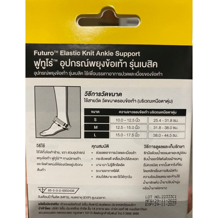 [ สีขาว] Futuro Elastic Knit Ankle Support ฟูทูโร่ อุปกรณ์พยุงข้อเท้า รุ่นเบสิค จำนวน 1 ชิ้น