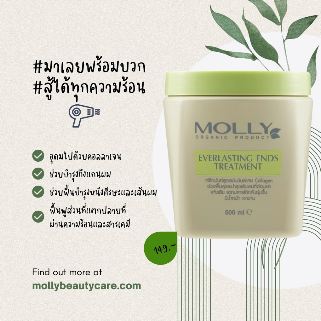 มอลลี่ ทรีทเม้นท์ บำรุงผม Molly Curl Therapy/ Everlasting Ends Treatment/ Intense Collagen Leave-in