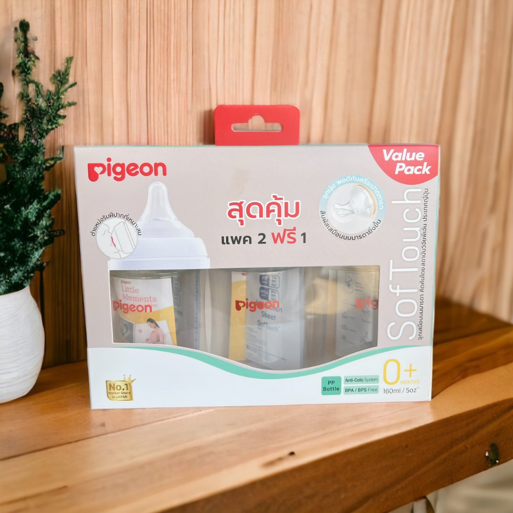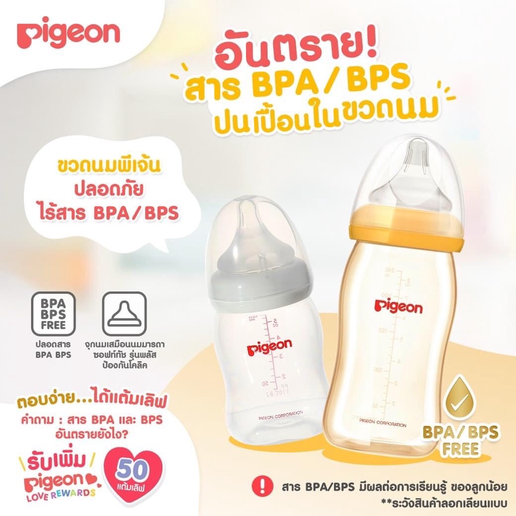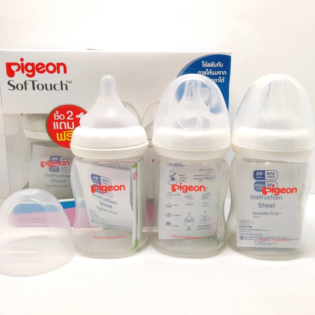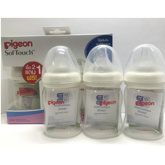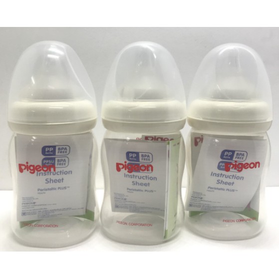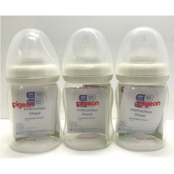 Pigeon ขวดนม PPWN รุ่นคอกว้าง 5ออนซ์ (แพ็ค2แถม1)แถมฟรีจุกไซส์ SS ฝาสีคละสี