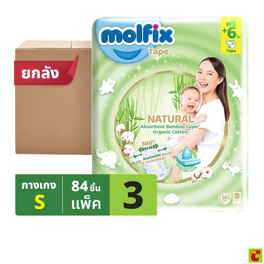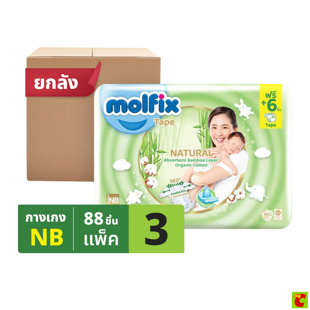 โมลฟิกซ์ เนเชอรัล เทป ผ้าอ้อมเด็กแบบเทป ขนาด NB - S x 3 แพ็ค