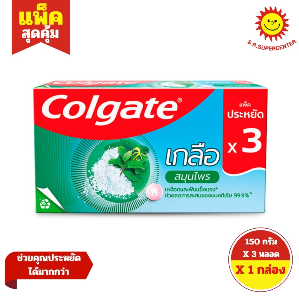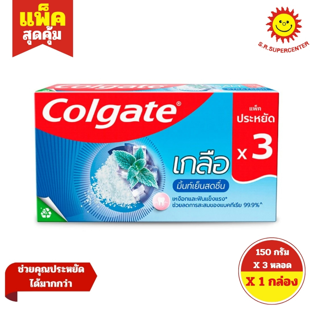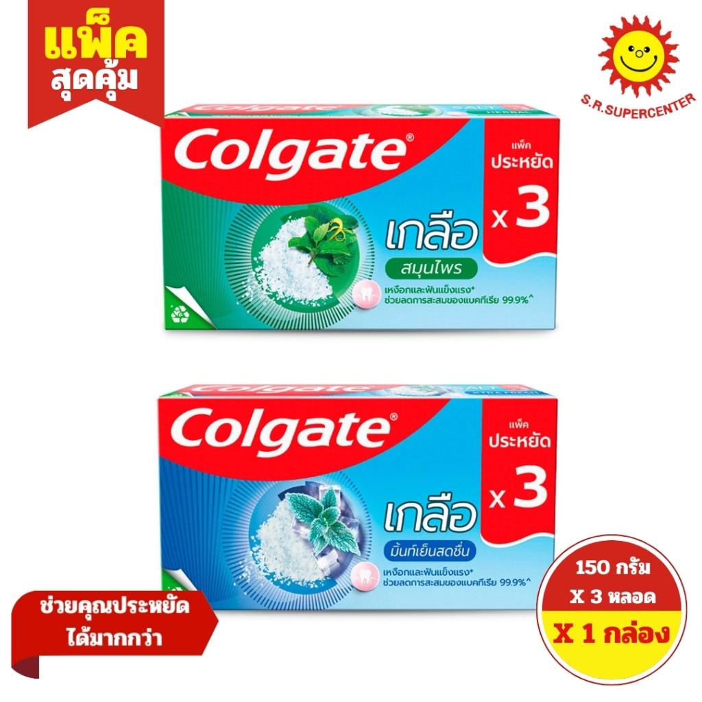 [ 1กล่อง ] Colgate Salt คอลเกต ยาสีฟันสูตรเกลือ ขนาด 150 กรัม x3 หลอด (1กล่อง) คละสูตร