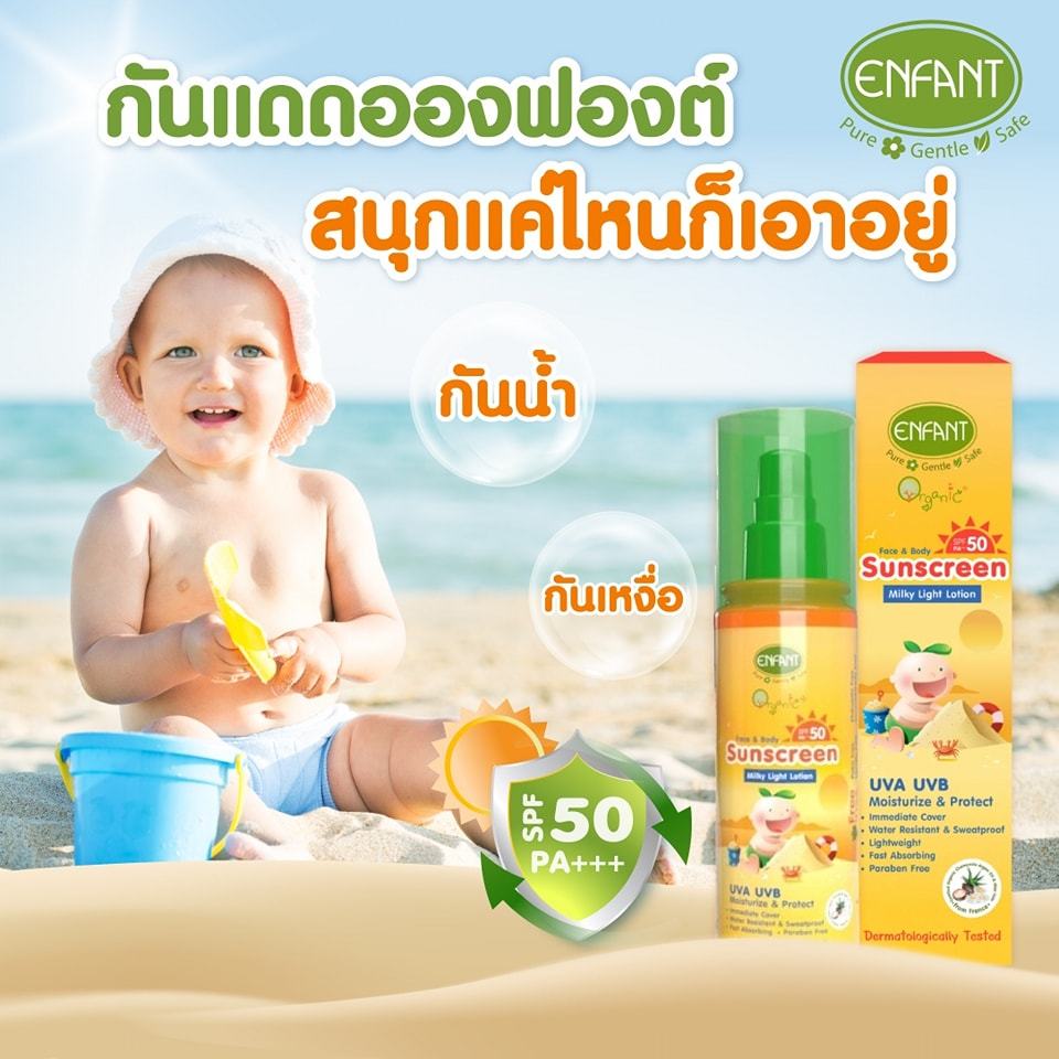 ENFANT โลชั่นกันแดด FACE&BODY SPF50+ MILKY LOTION 70ml. สูตร ORGANIC PLUS เหมาะกับอายุ 1 ป ีขึ้นไป