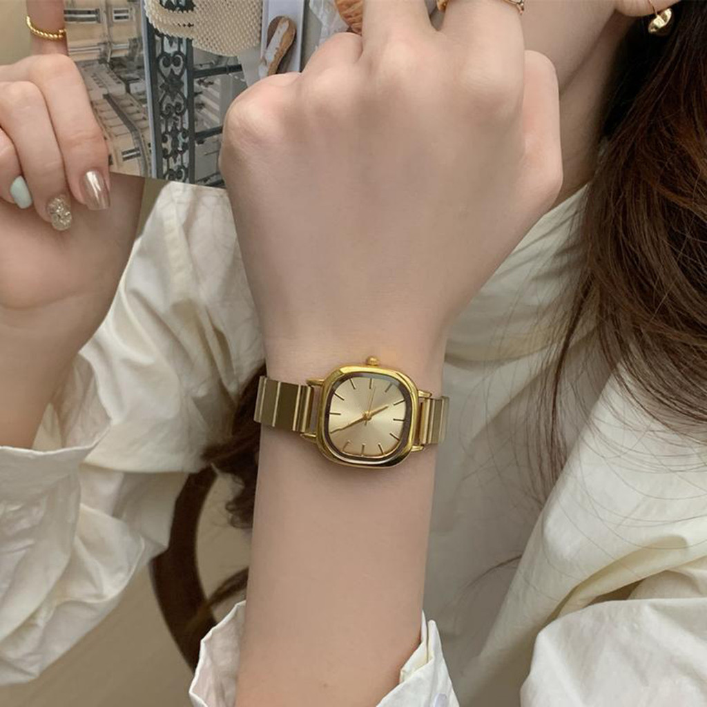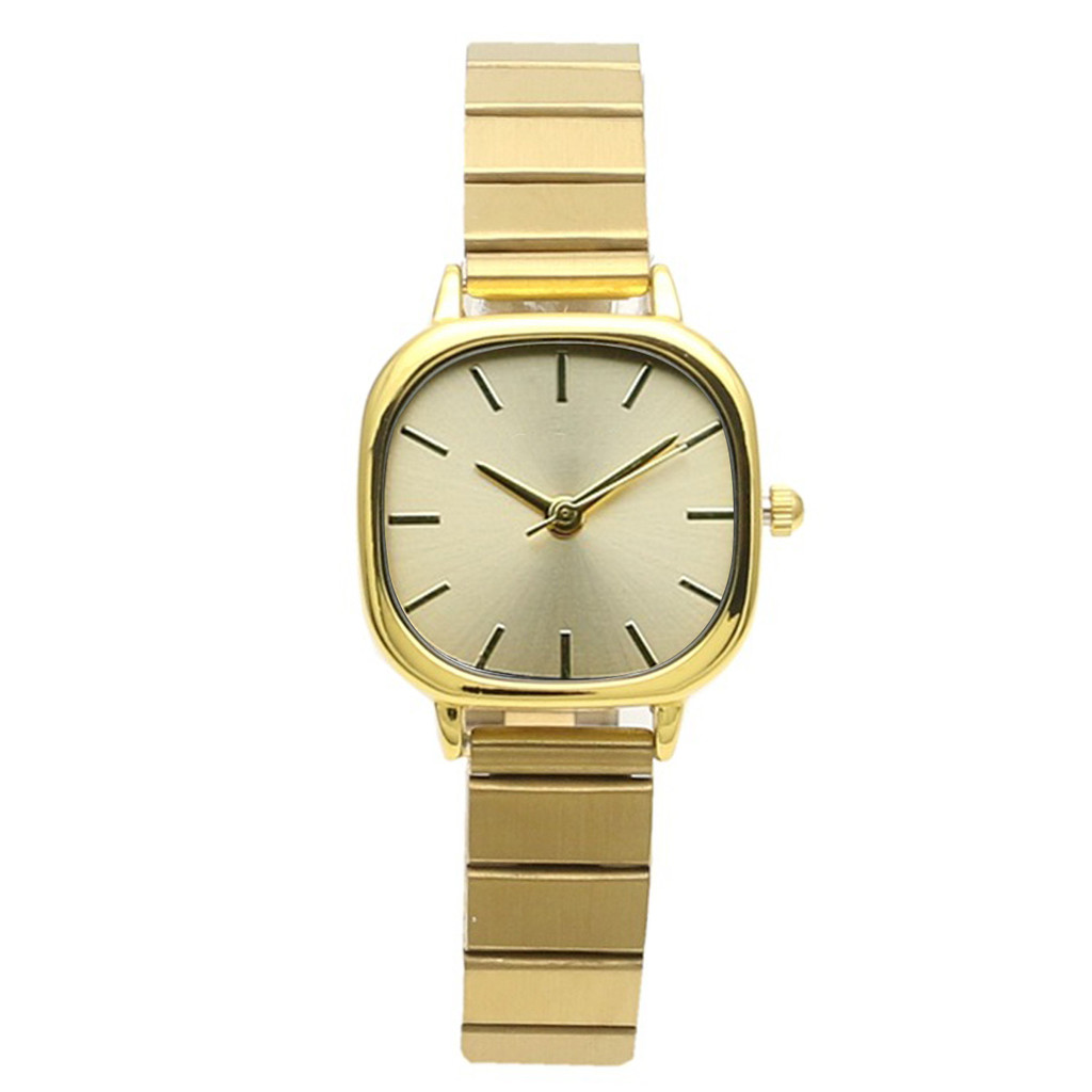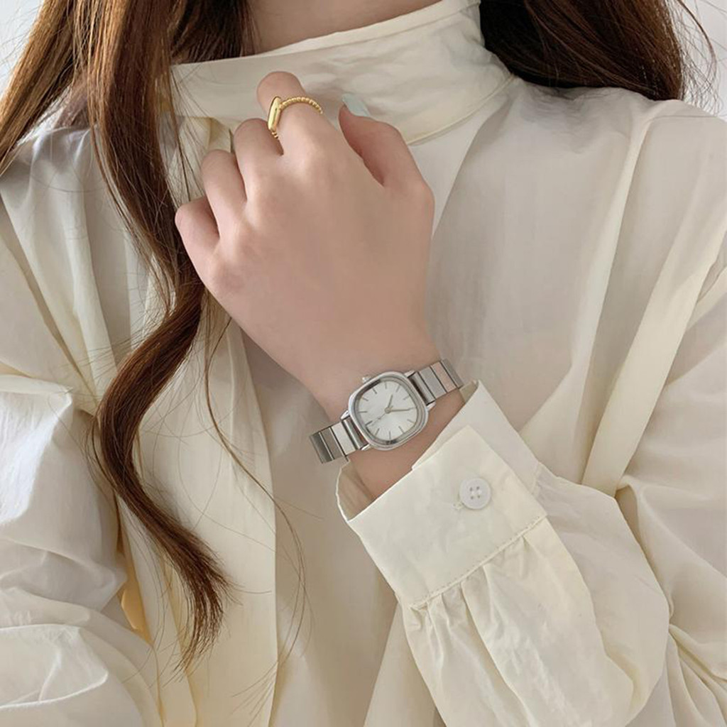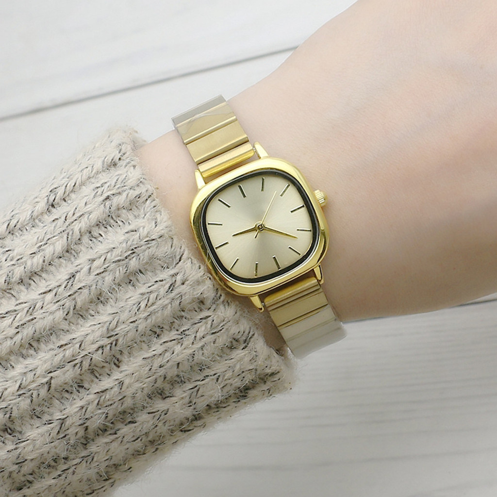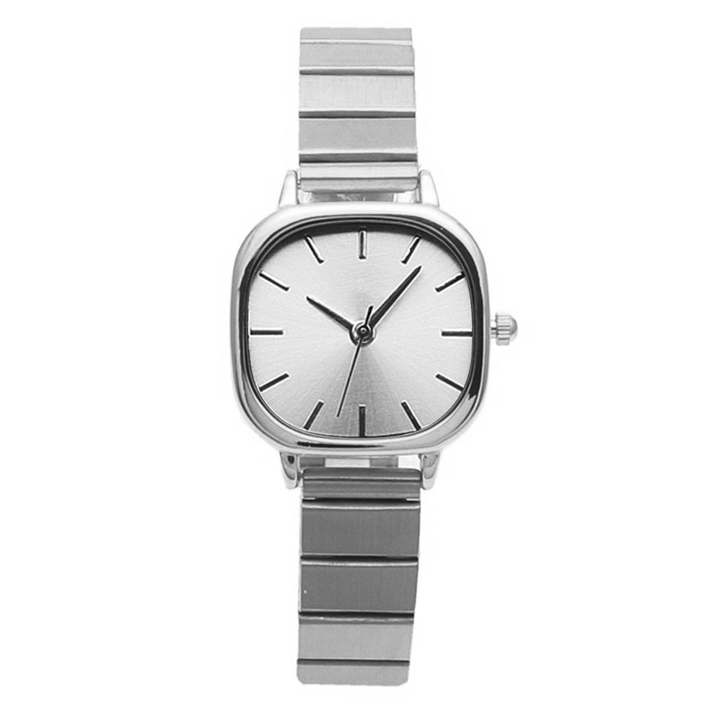 นาฬิกาสแตนเลสทรงสี่เหลี่ยมวินเทจสําหรับผู้หญิงเรียบง่ายและสง่างามสุภาพสตรีควอตซ์