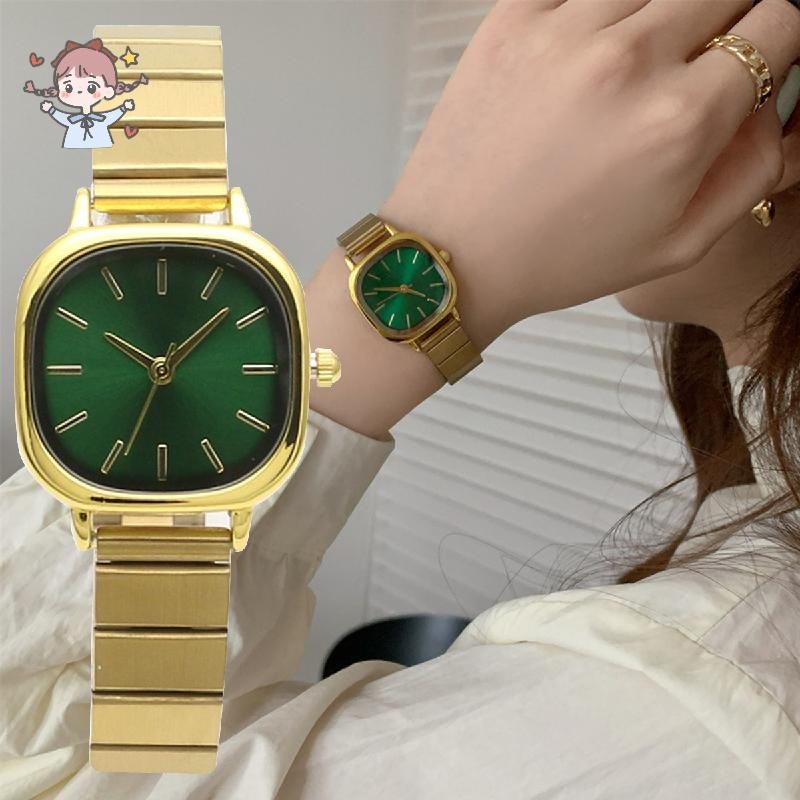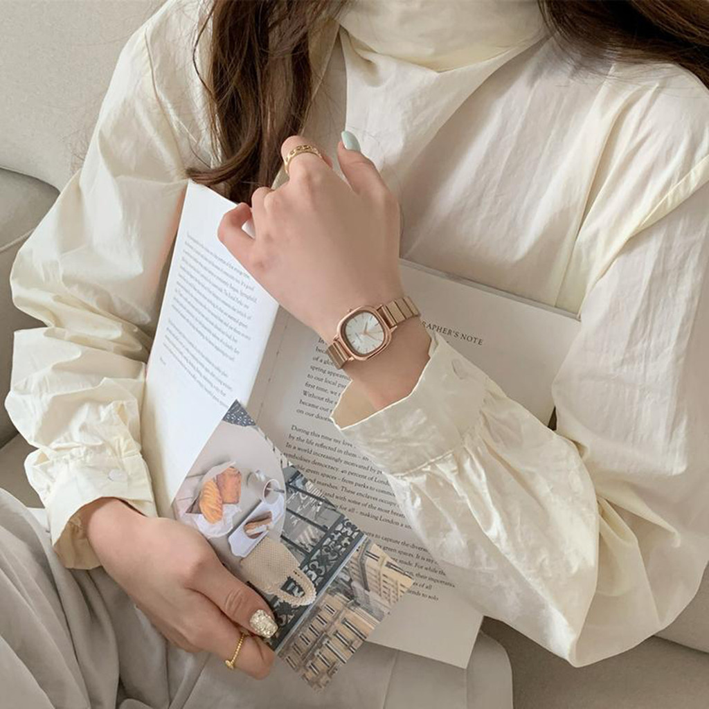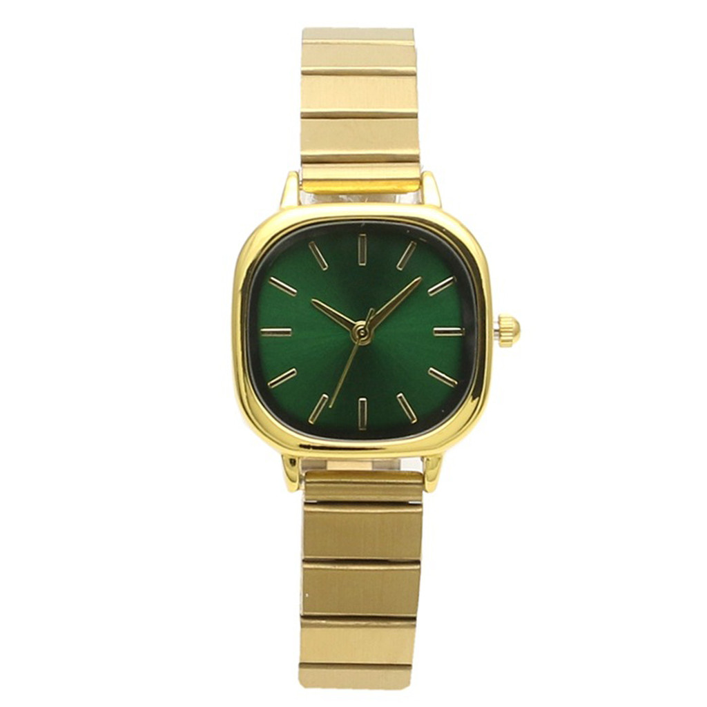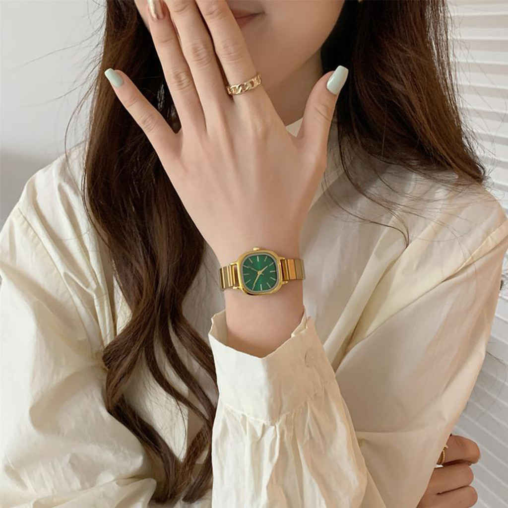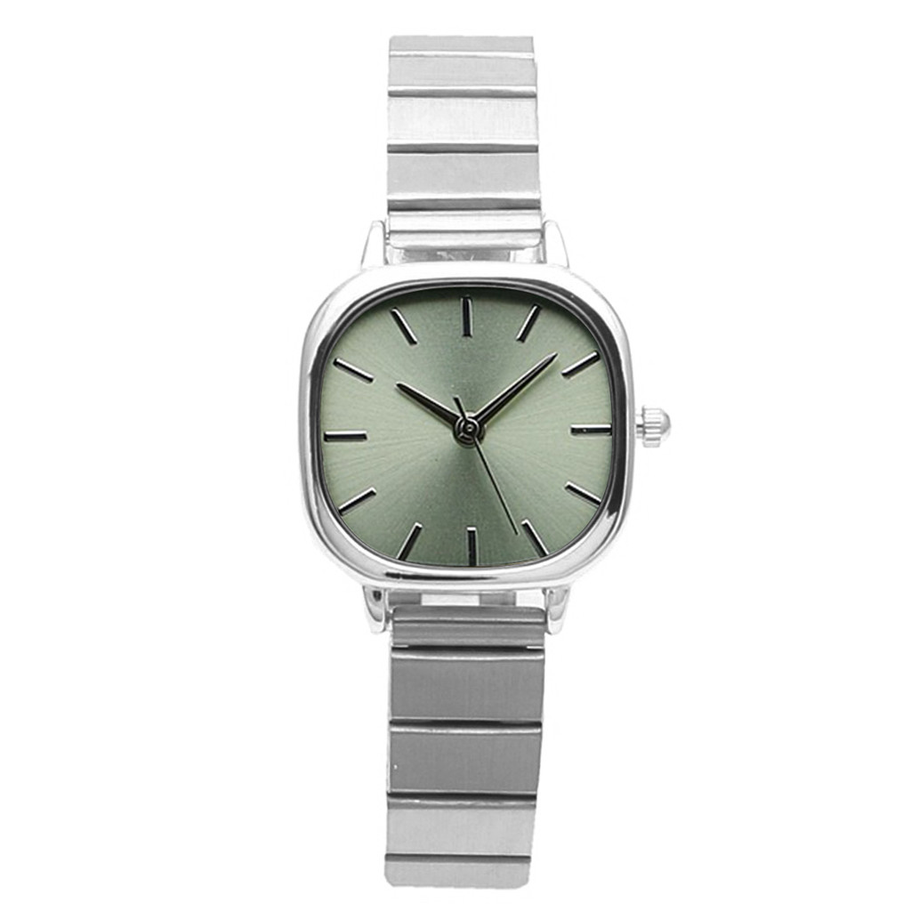 นาฬิกาสแตนเลสทรงสี่เหลี่ยมวินเทจสําหรับผู้หญิงเรียบง่ายและสง่างามสุภาพสตรีควอตซ์