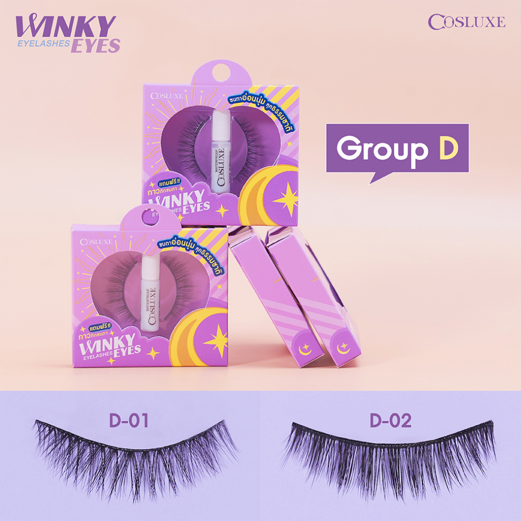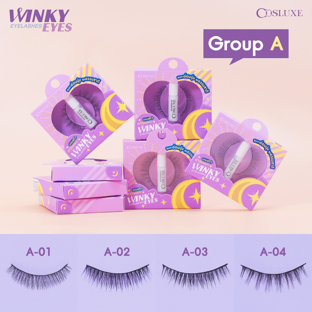 COSLUXE WINKY EYE EYELASHES ขนตาปลอม เส้นขนอ่อนนุ่ม เสมือนขนตาธรรมชาติ คอสลุคส์ วิ้งค์กี้ อายส์ อายแลชเชส แถมกาว 1ml.