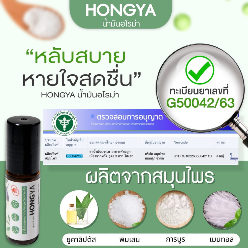 Hong Ya โฮงยา น้ำมันนวด อโรม่า ไมเกรน ปวดหัว วิงเวียน แบบลูกกลิ้งใช้นวดได้