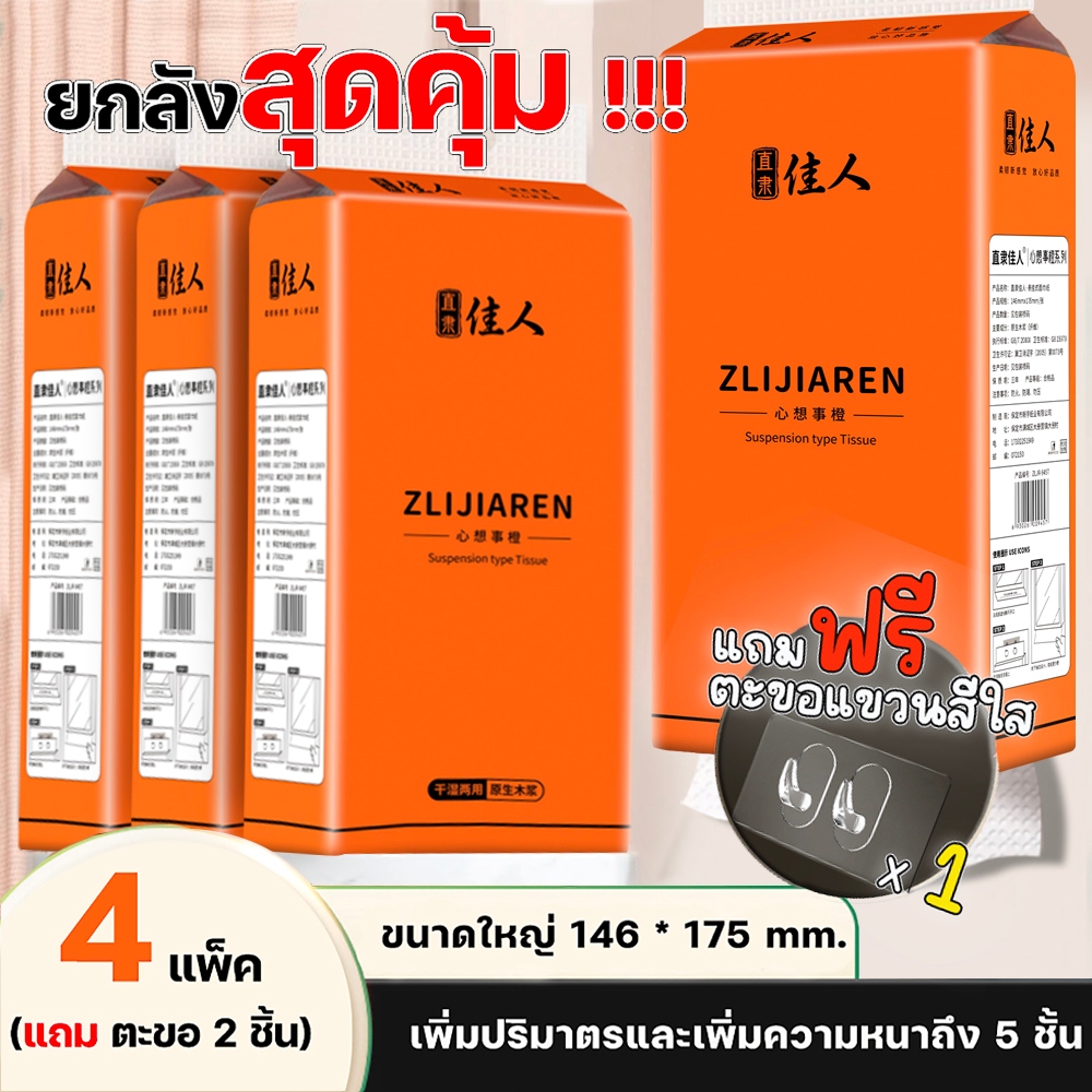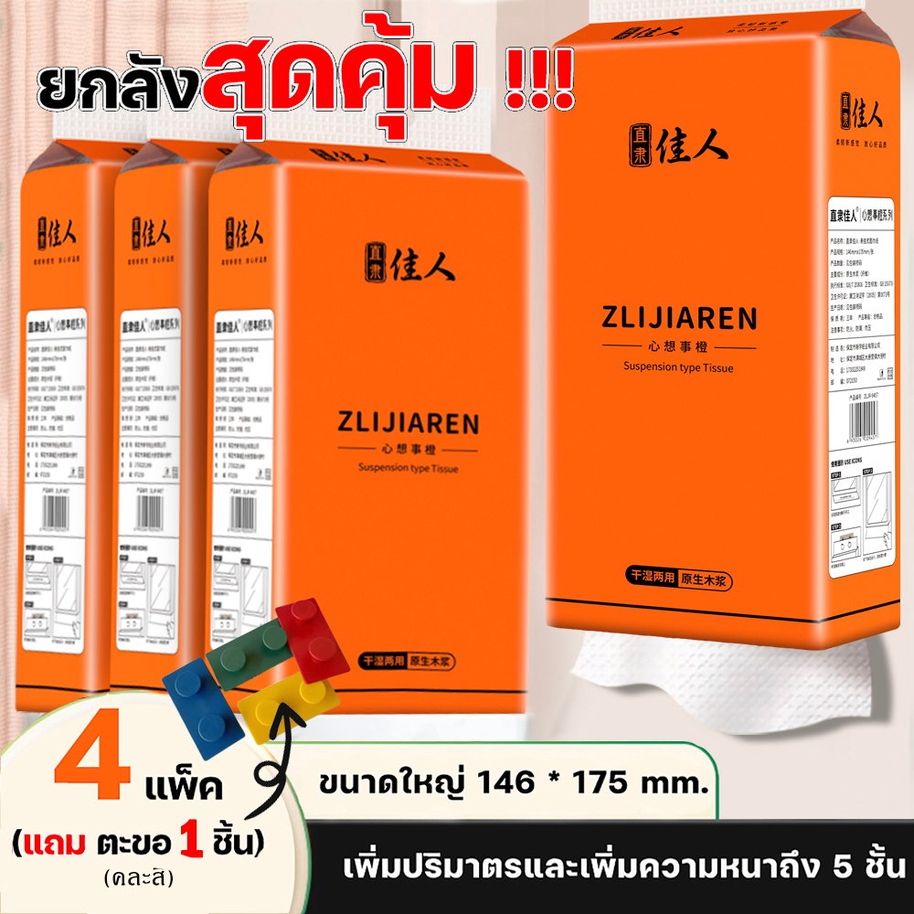 ทิชชู่แบบดึงแขวนได้ หนา 5 ชั้น 1500 แผ่น 300 ดึง สัมผัสนุ่มละมุน ไม่เป็นขุย อ่อนโยน 1 ลัง4 ห่อ