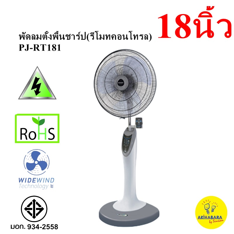 SHARP พัดลมตั้งพื้นรีโมทคอนโทรล 18 นิ้ว PJ-RT181 สีเทา