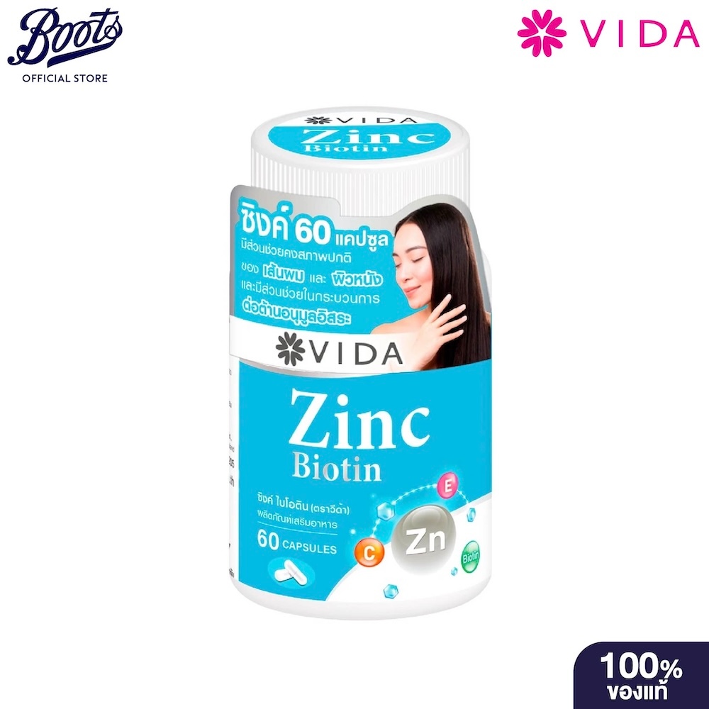 VIDA ผลิตภัณฑ์เสริมอาหาร ซิงค์ ไบโอติน (ตราวีด้า)