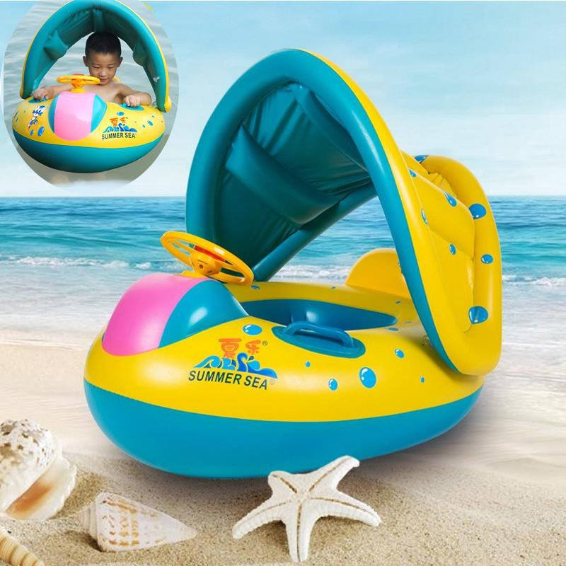 Chinamall ห่วงยางเด็กมีที่บังแดกและพวงมาลัยทำจากไวนีลหนา เหมากับเด็ก 1-3 ขวบ