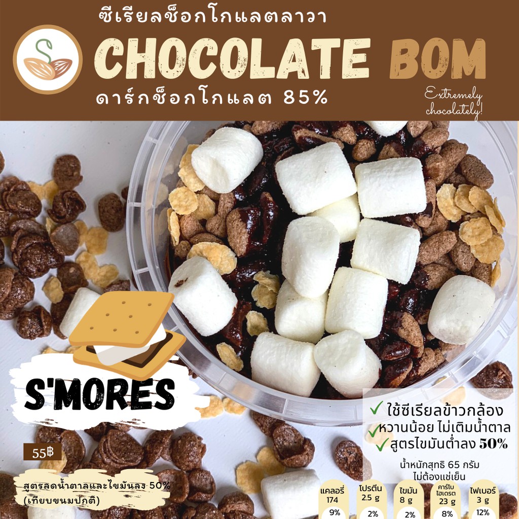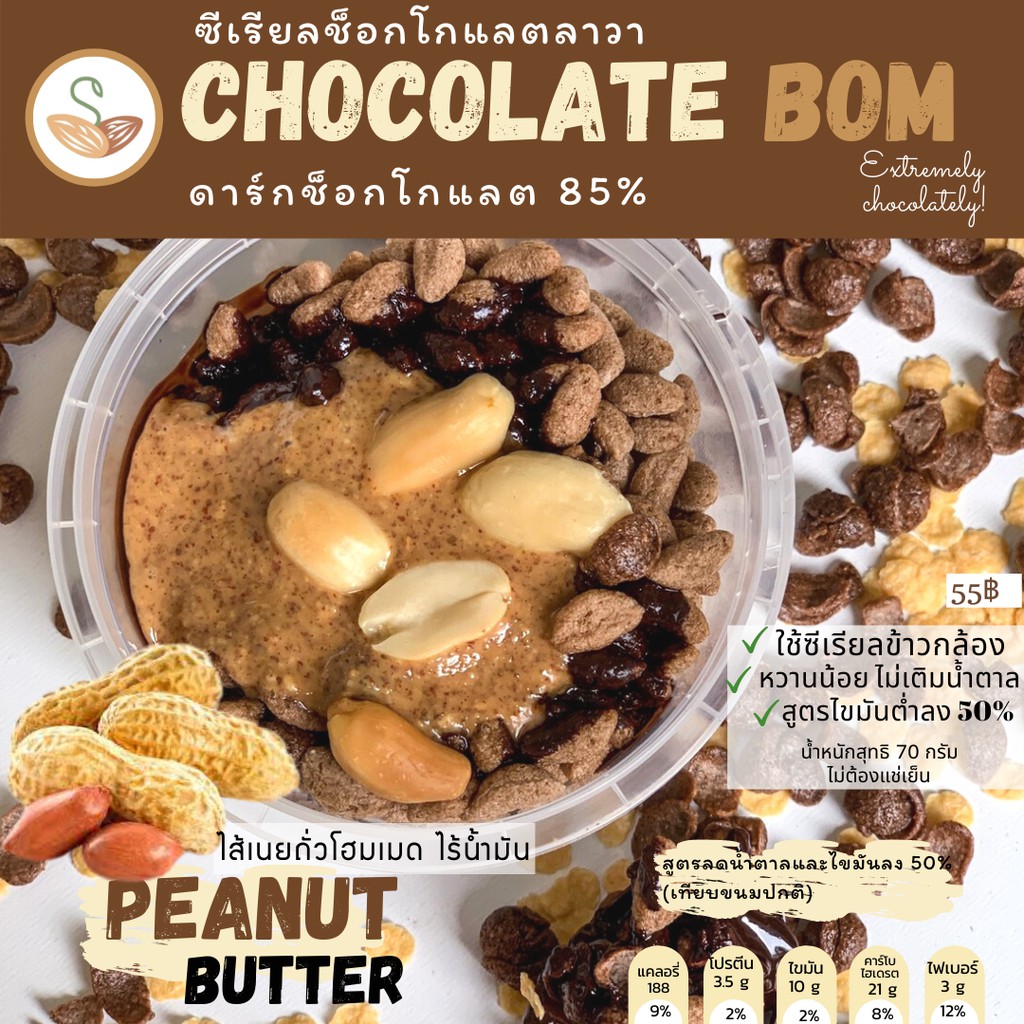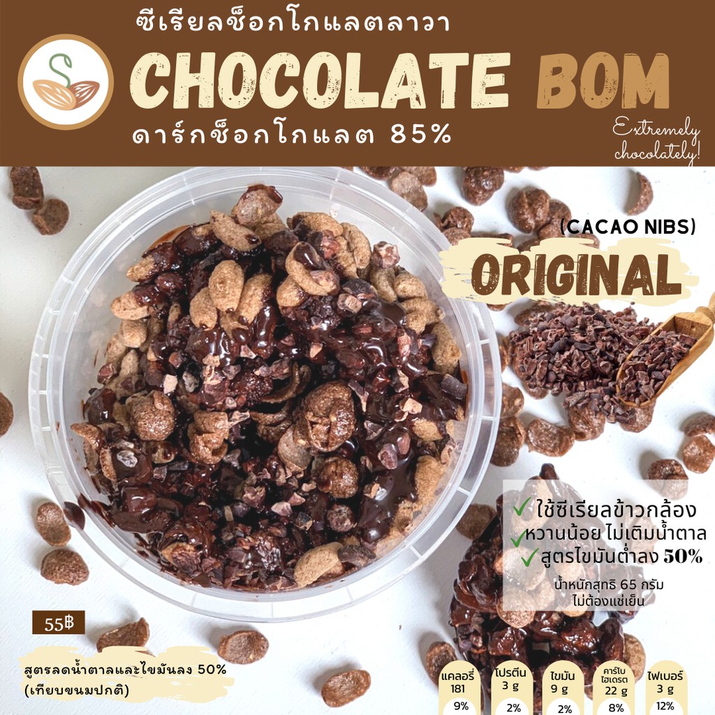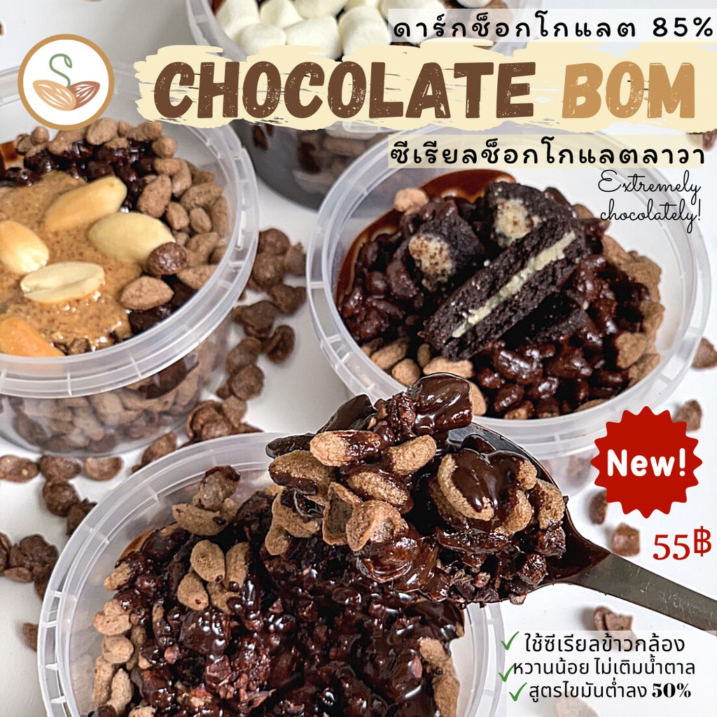 Chocolate bom ซีเรียลช็อกโกแลตลาวา (มี 4 รสชาติ) ขนมคลีน แคลอรี่ต่ำ