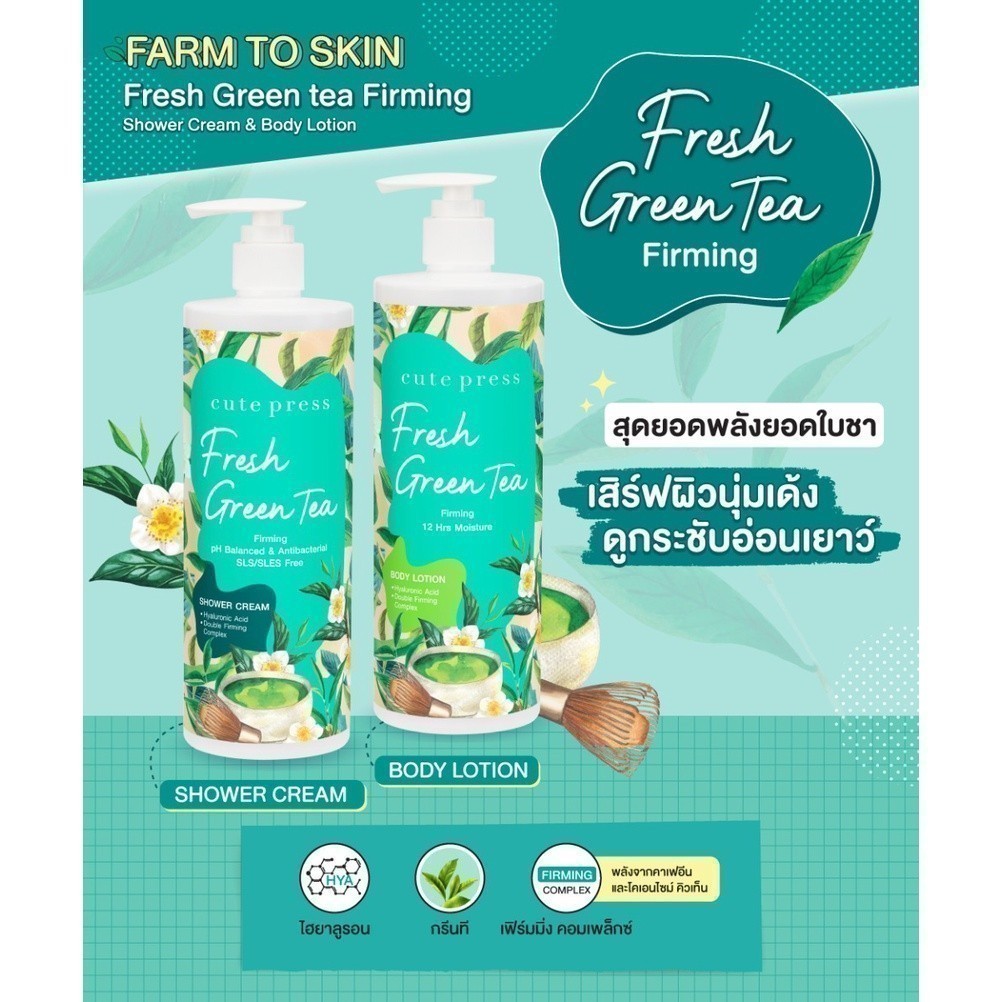CUTE PRESS FRESH GREEN TEA FIRMING BODY LOTION 490 ml โลชั่นบำรุงผิว ผิวนุ่มเด้ง ดูกระชับอ่อนเยาว์