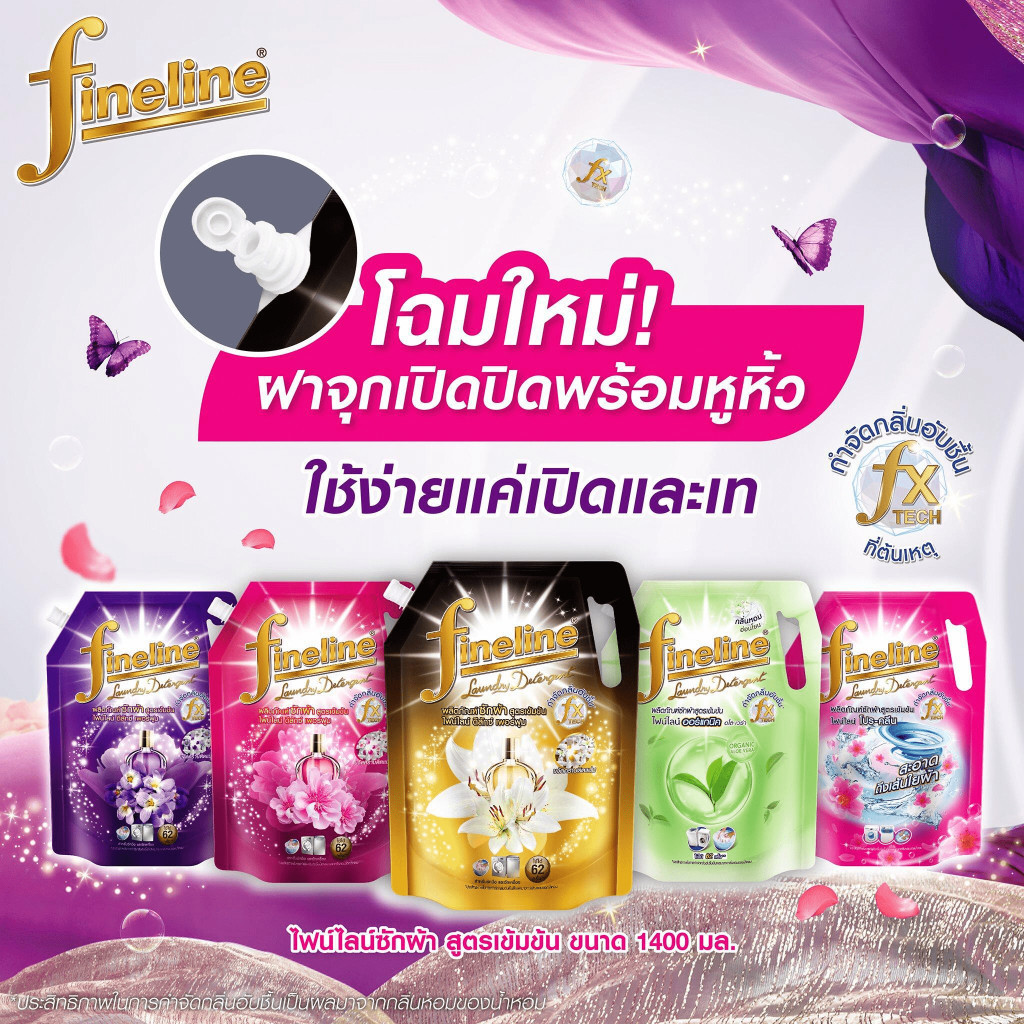 [แพ็ค6] Fineline ไฟน์ไลน์ น้ำยาซักผ้าเข้มข้น 1200-1400มล. ขจัดคราบฝังลึก สูตรเข้มข้น ผลิตภัณฑ์ซักผ้าชนิดน้ำ