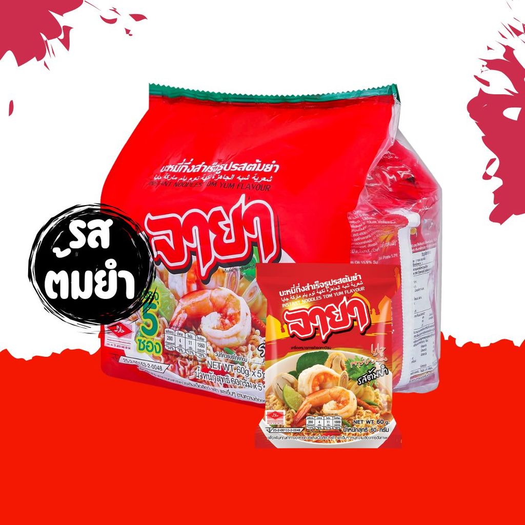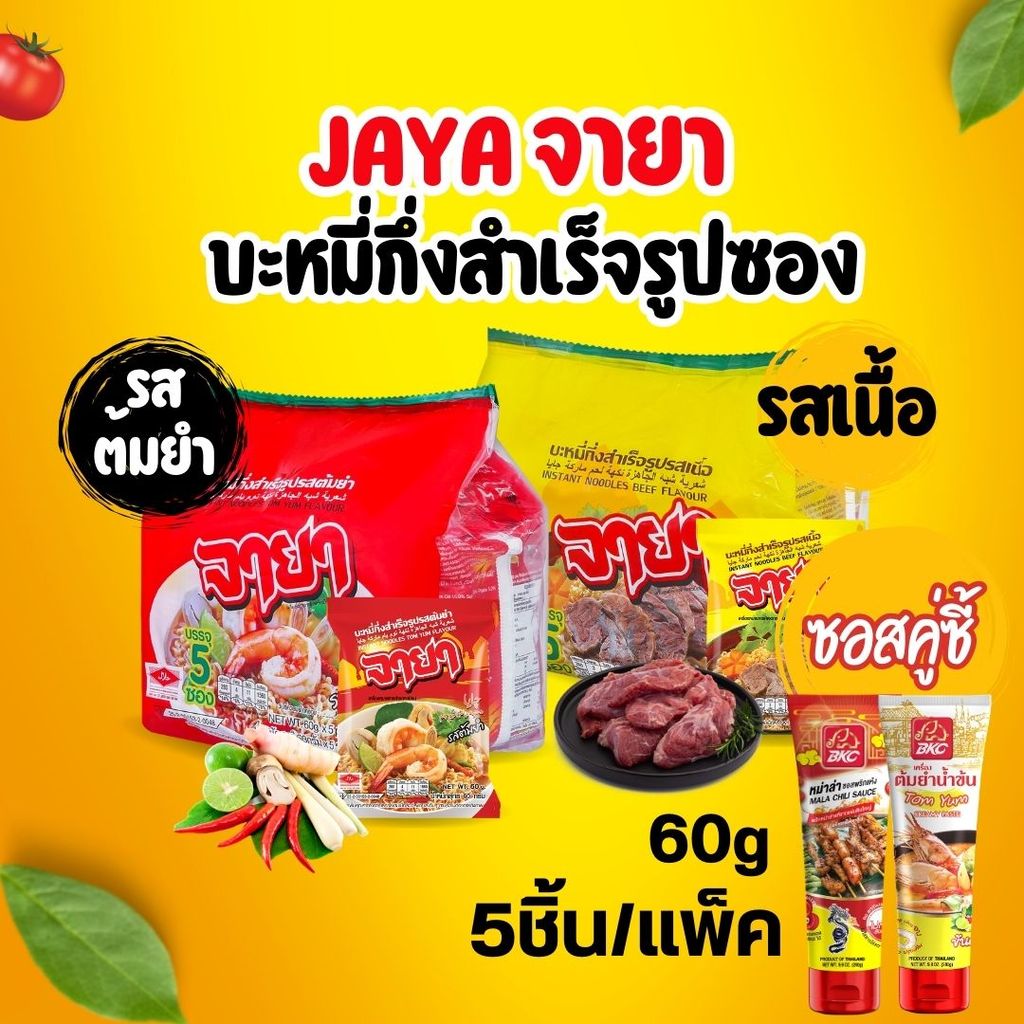 🍜JAYA จายา บะหมี่ซอง รสเนื้อและรสต้มยำ 60g 5ชิ้น/แพ็ค by กำตังค์