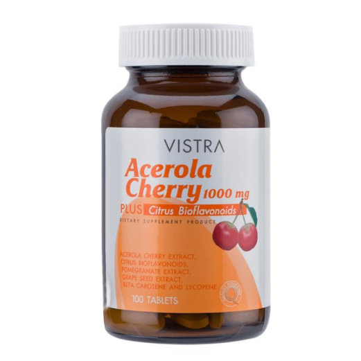 VISTRA ACEROLA CHERRY 1000MG อะเซโรล่าเชอร์รี่ ขนาด 45 เม็ด และ 100 เม็ด
