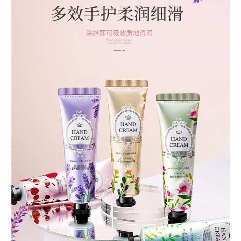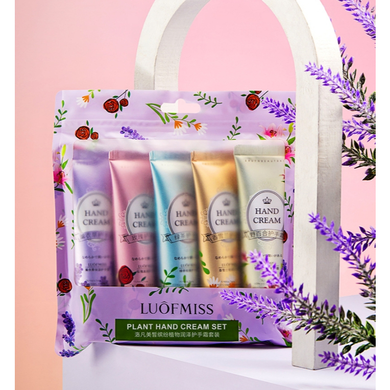 LUOFMISS PLANT HAND CREAM SET ( ซองสีม่วง 1 เซต ) ครีมทามือ อ่อนโยน ช่วยเพิ่มความชุ่มชื้นให้กับมือ