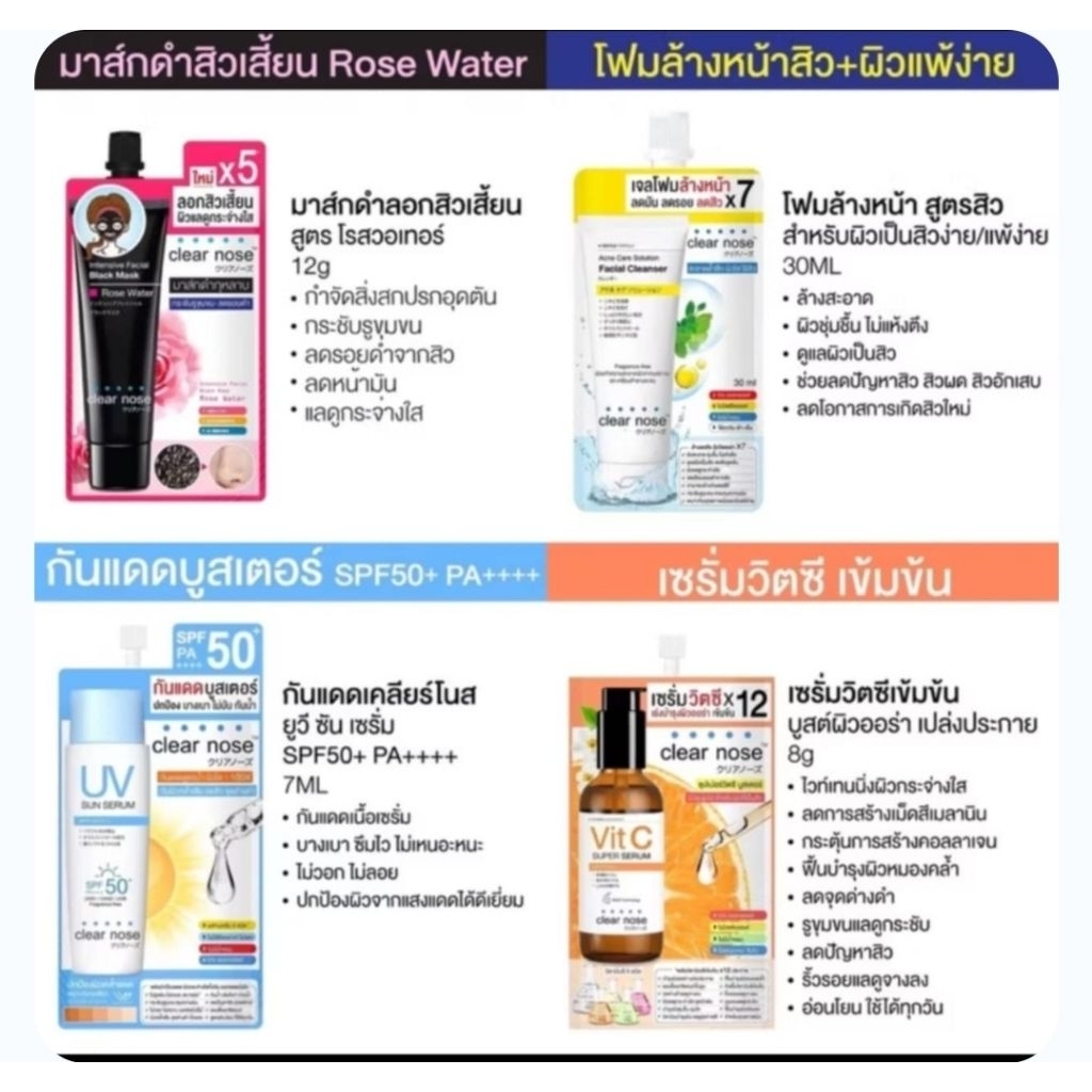 สินค้าพร้อมจัดส่ง (กล่องX6ซอง) ของแท้ Clear Nose เคลียร์โนส เซรั่ม/เจล/บีบี/โฟมล้างหน้า/กันแดด/ลอกสิว
