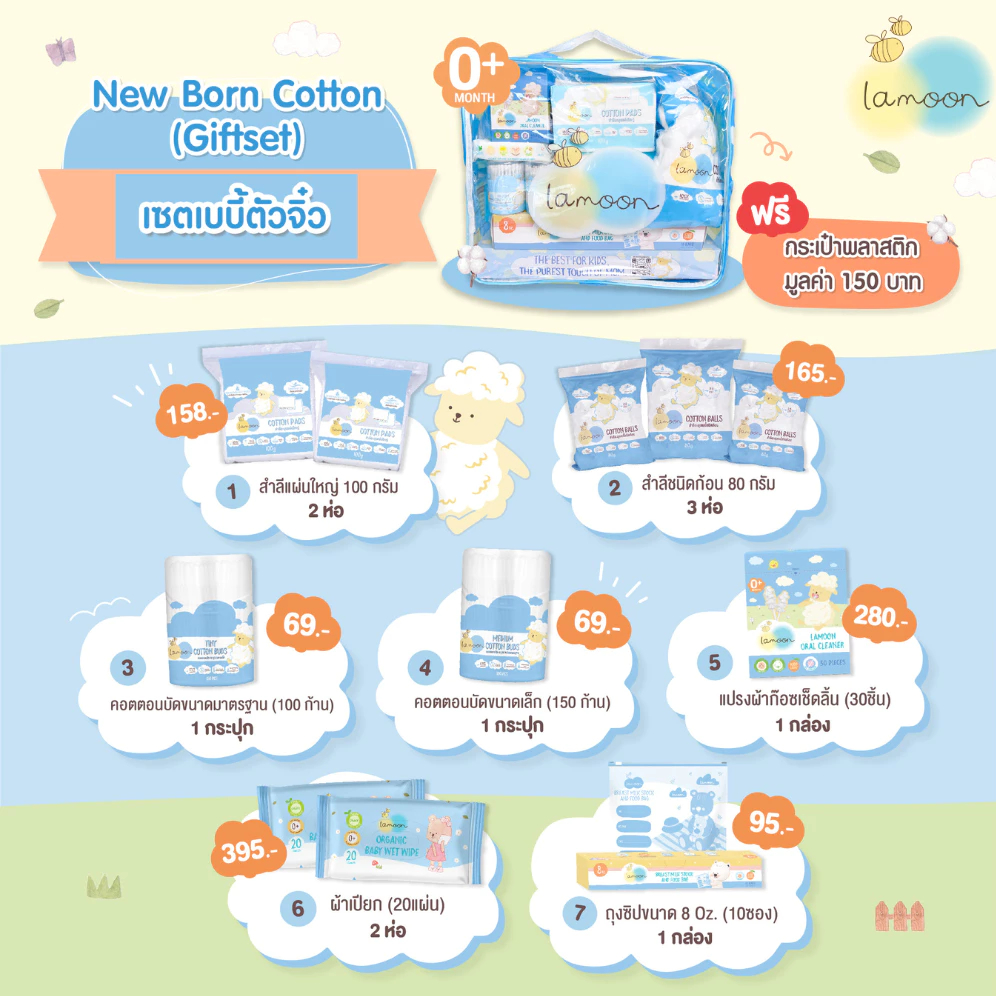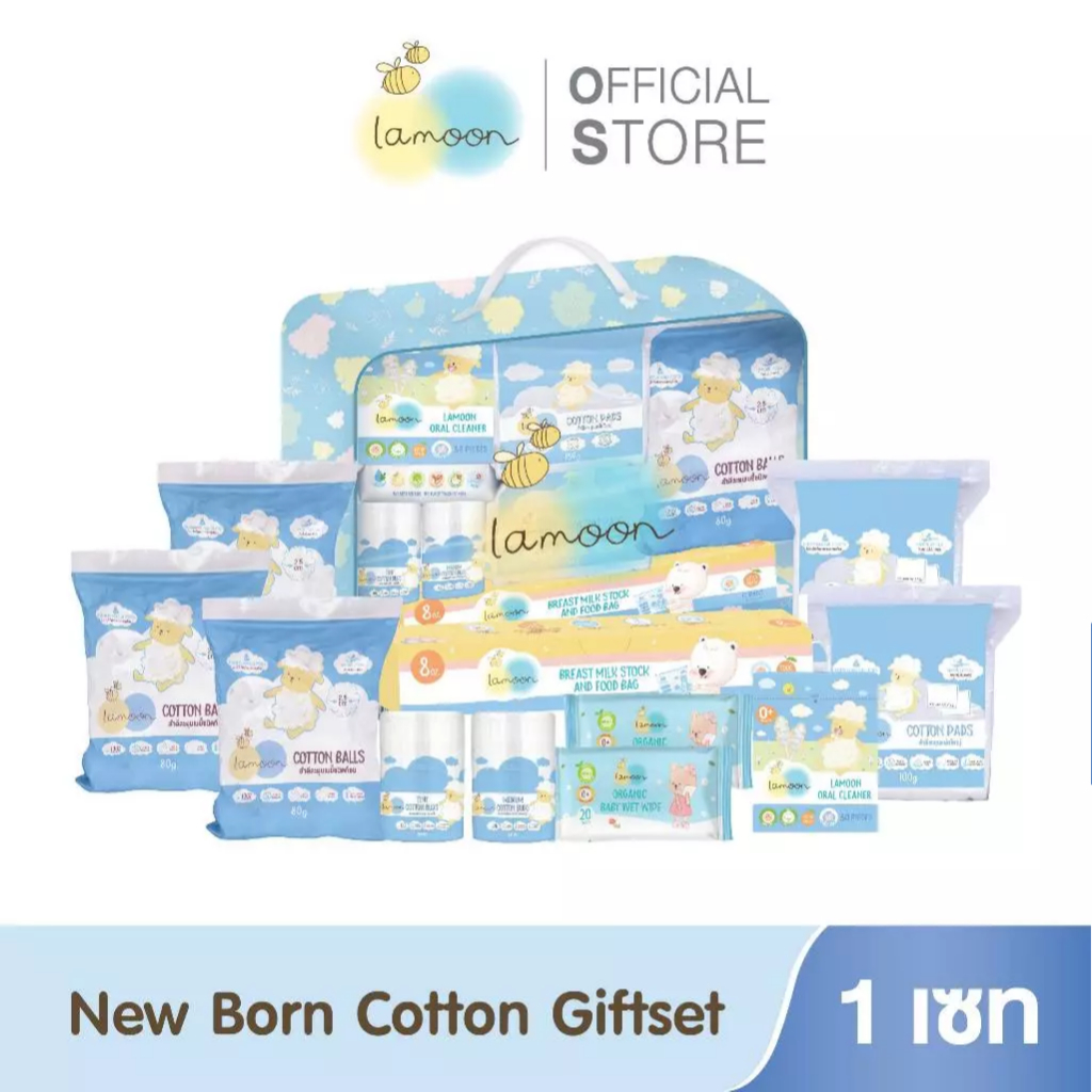 Lamoon เซตกระเป๋าสำลี สำหรับทารก Cotton Cloud Gift Set ของขวัญเยี่ยมคลอด กระเป๋าเยี่ยมคลอด ละมุน