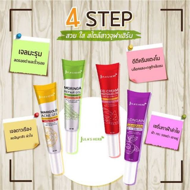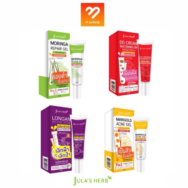 Jula Herb จุฬาเฮิร์บ 4 สูตร ลำใย แตงโม มะรุม ดาวเรือง แบบหลอด 40 มล. เซรั่มทาฝ้าลำใย ดีดีครีมแตงโม เจลมะรุม เจลดาวเรือง