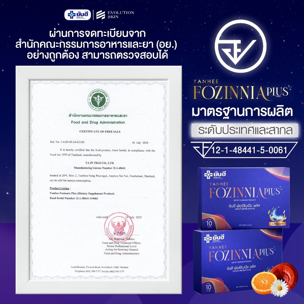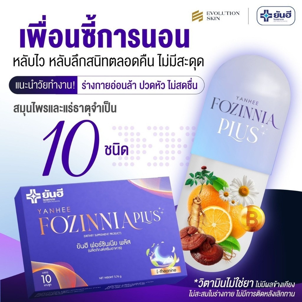 [M/ลดทั้งไลฟ์/ของแท้] วิตามินนอนหลับ ยันฮี ฟอร์ซินเนีย พลัส FOZINNIA PLUS สูตรหลับลึก