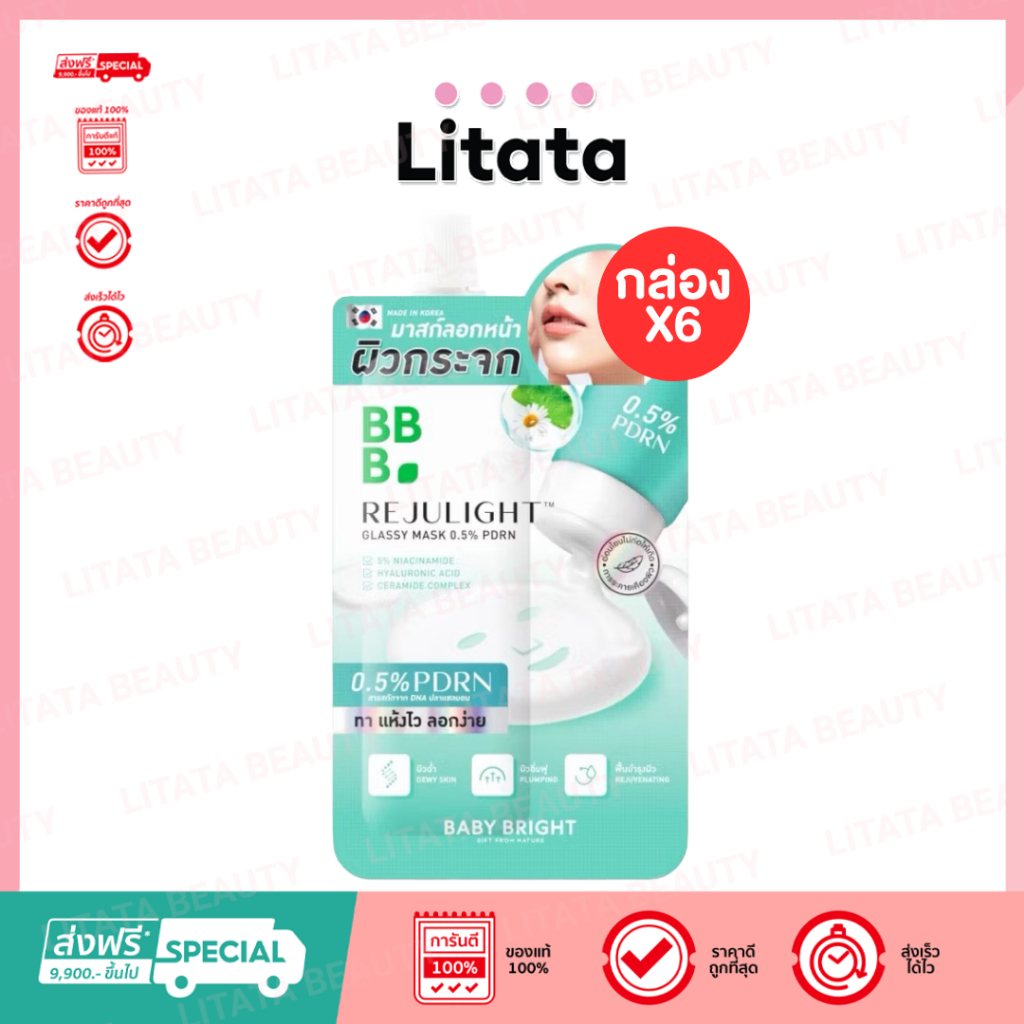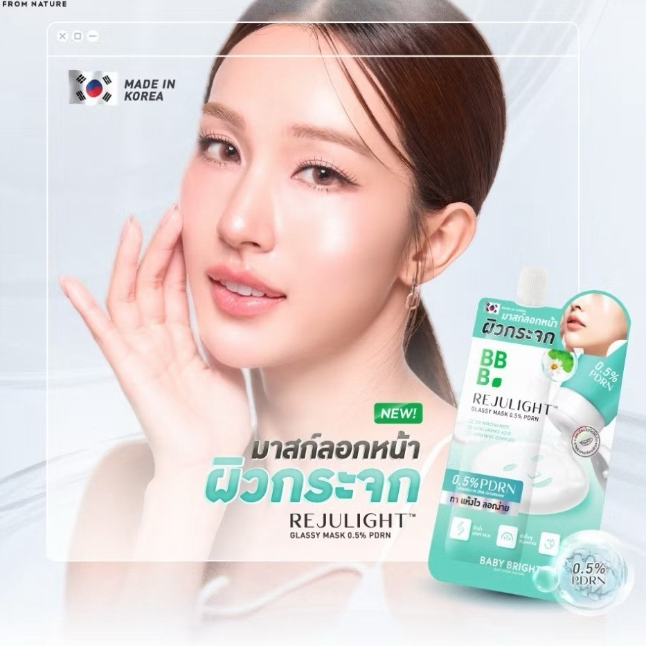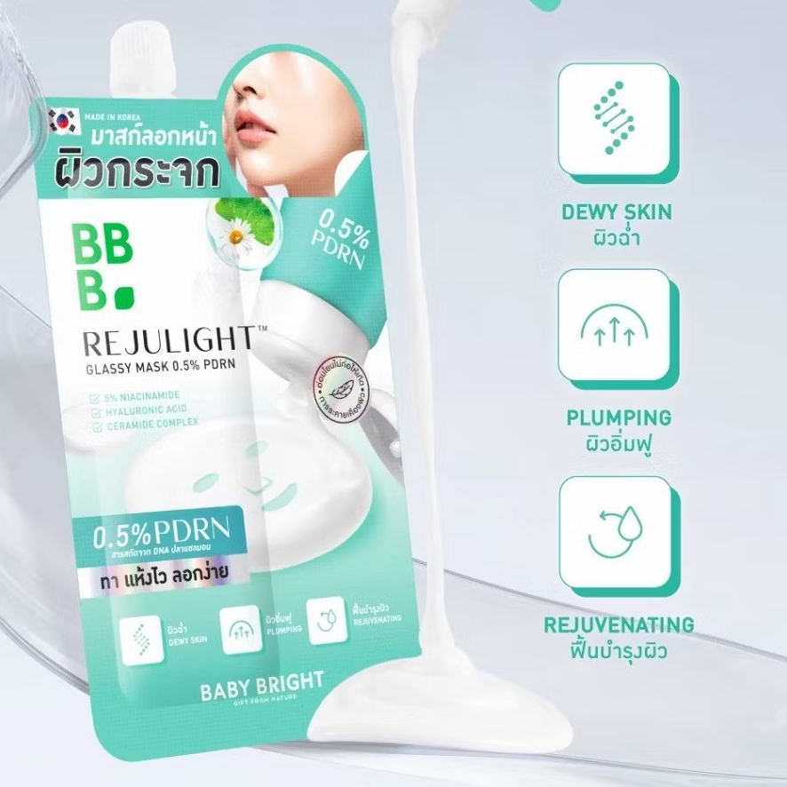 [กล่อง x6] Baby Bright Rejulight Glassy Mask 0.5 % PDRN เบบี้ไบร์ท รีจูไลท์ กลาสซี่ มาส์ก 0.5% PDNA 7 กรัม