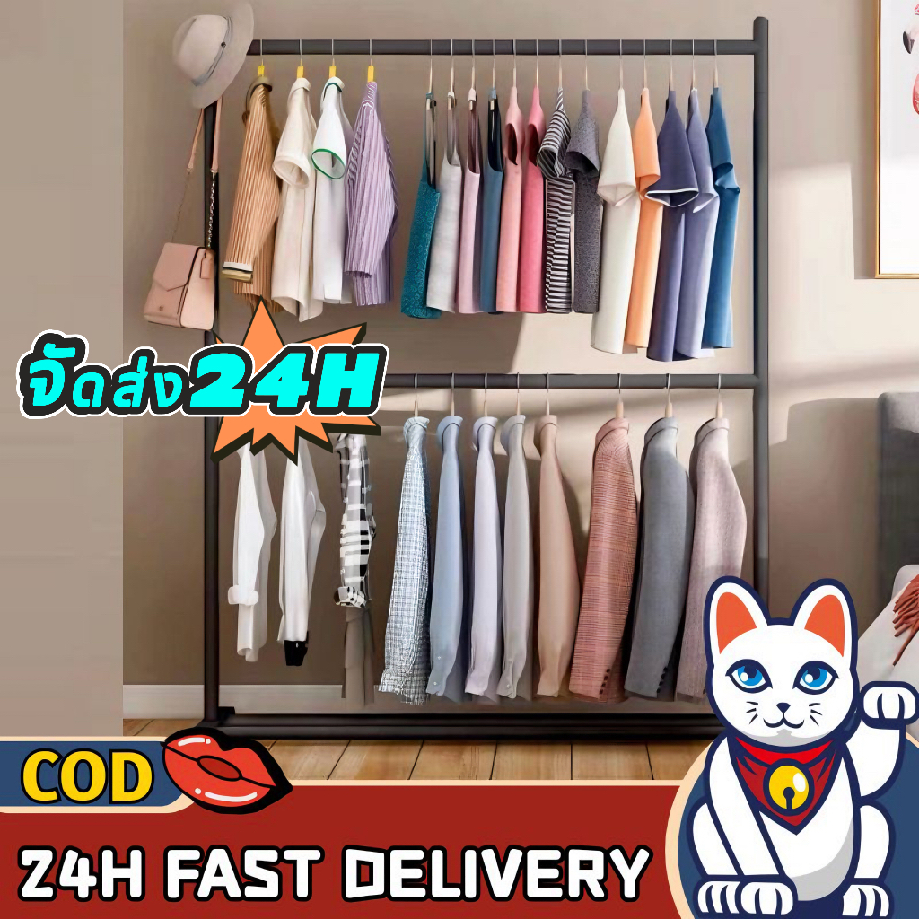 Lucky😸มีพร้อมส่ง ราวแขวนเสื้อผ้าพร้อมที่แขวนหมวกและเสื้อโค๊ท มีหลายขนาด